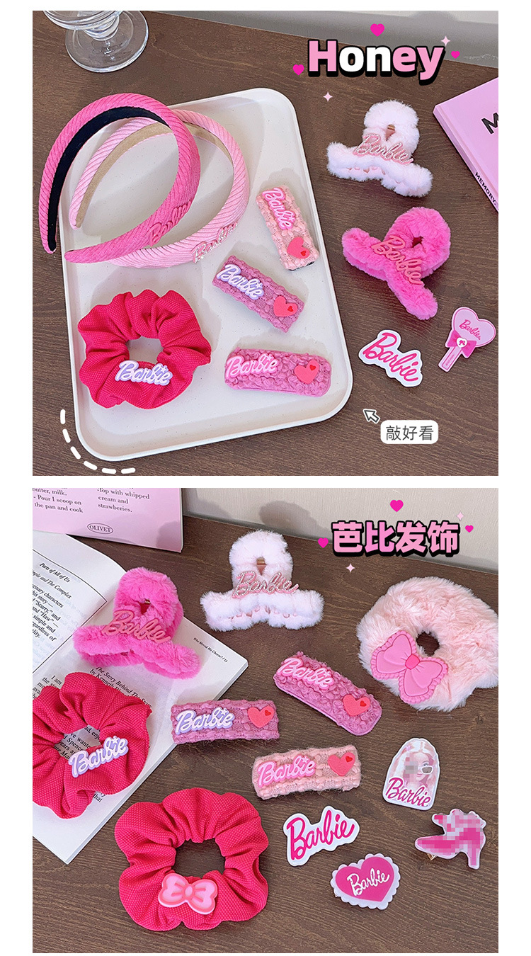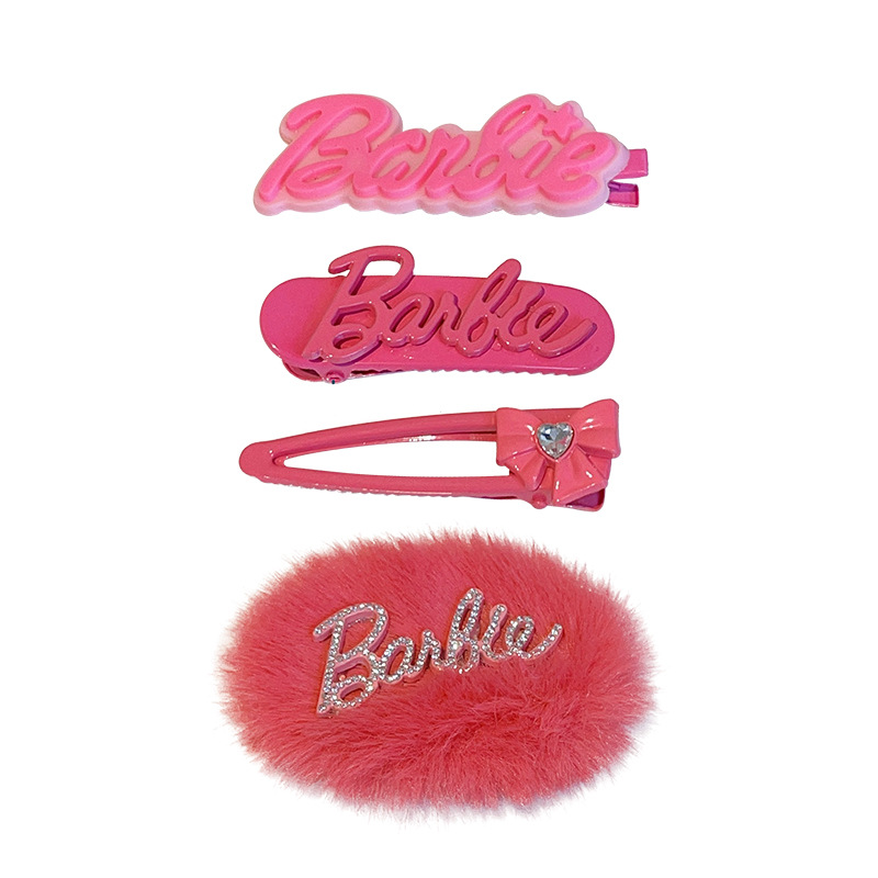 秋冬新款多巴胺发饰芭比发夹网红粉色边夹毛绒发卡毛毛夹子女头饰