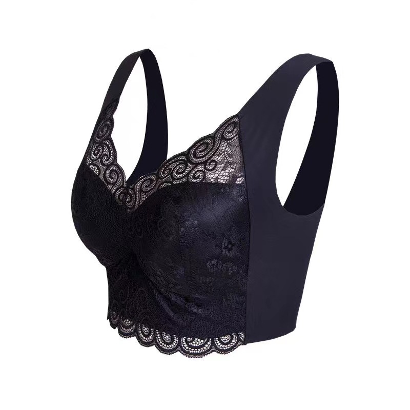 大码蕾丝无钢圈内衣大胸显小防下垂调整型收副乳背心式女内衣文胸