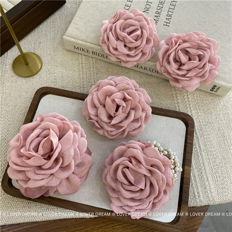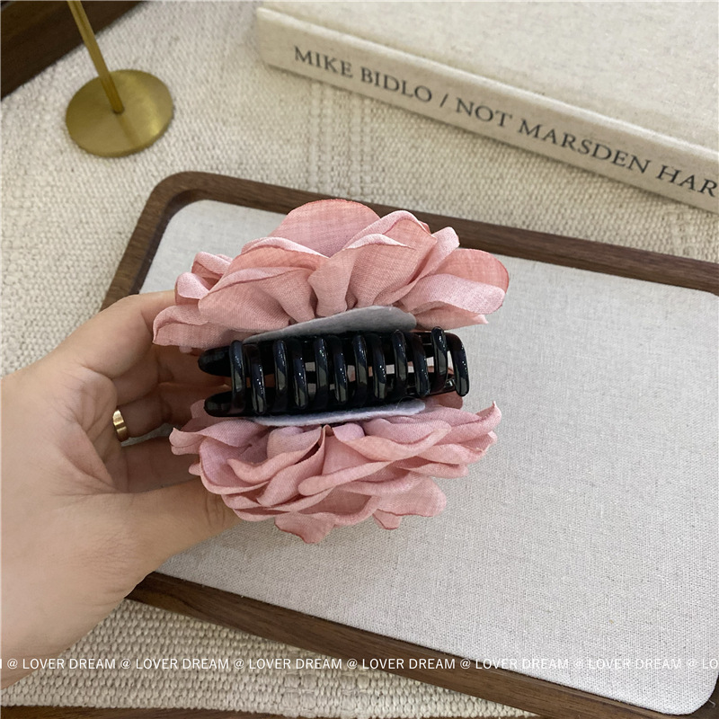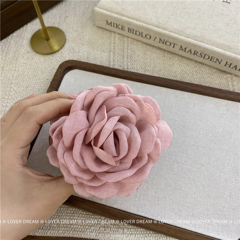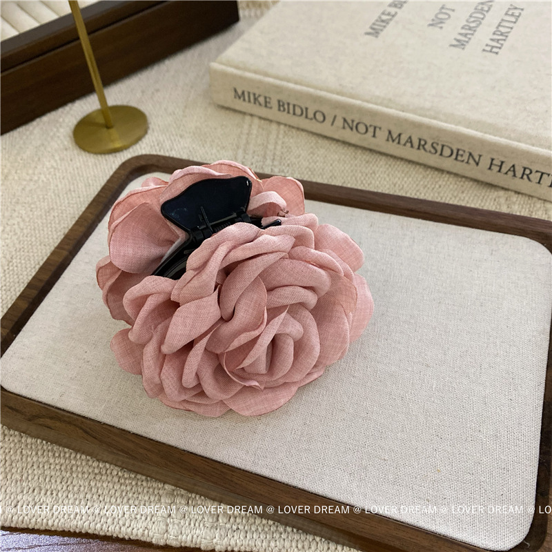 韩国新款caro同款温柔粉玫瑰花朵发夹 甜美后脑勺抓夹时尚发饰女