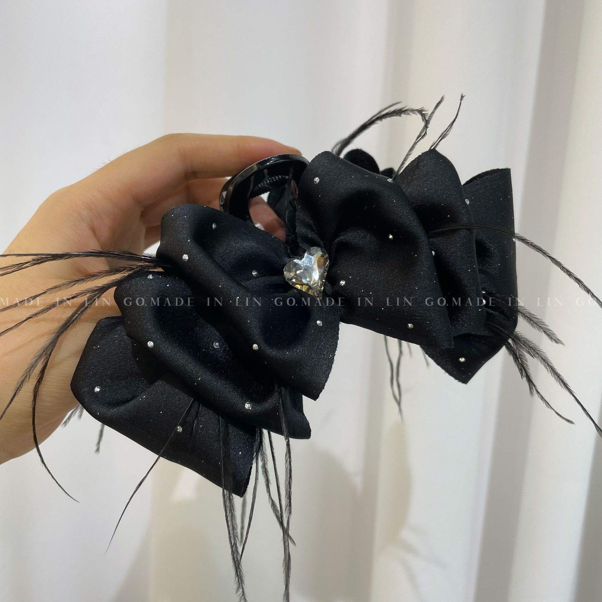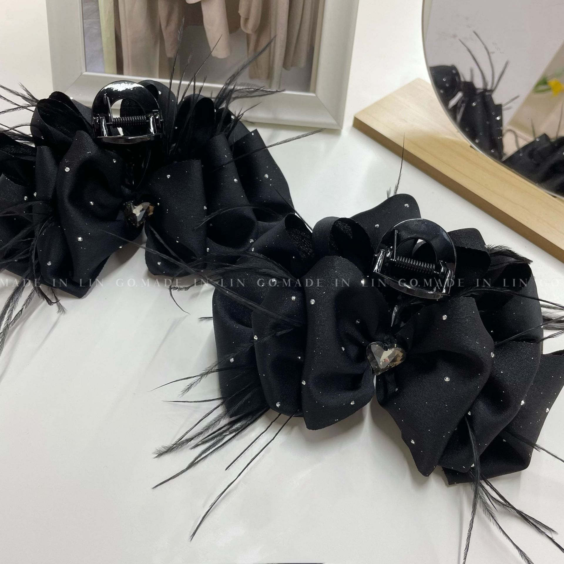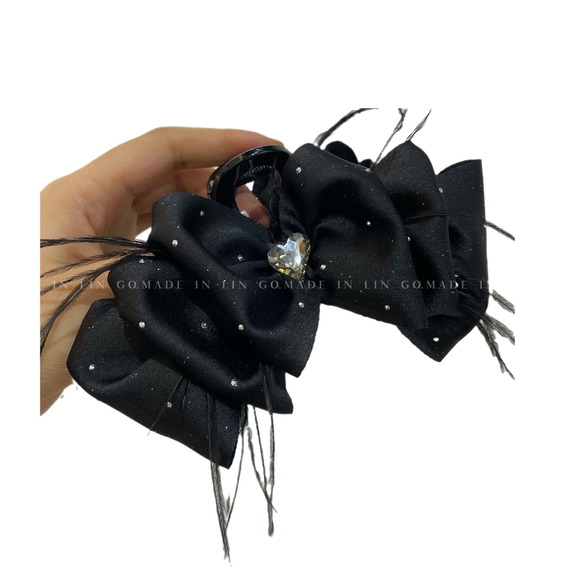 新款星空缎面羽毛抓夹爱心水钻鲨鱼发抓女