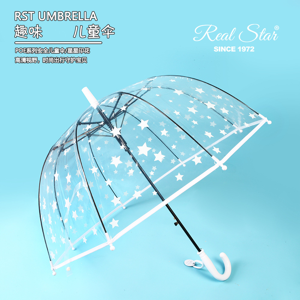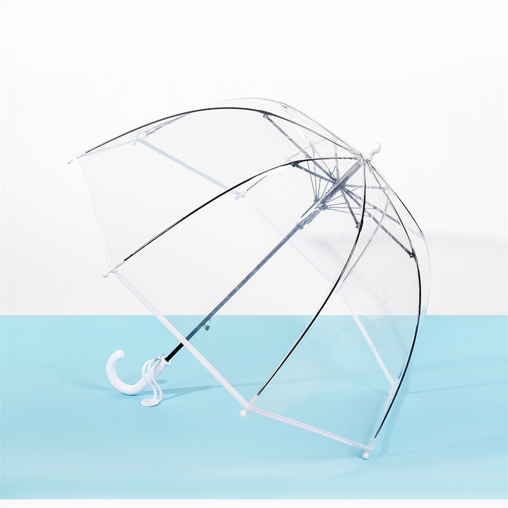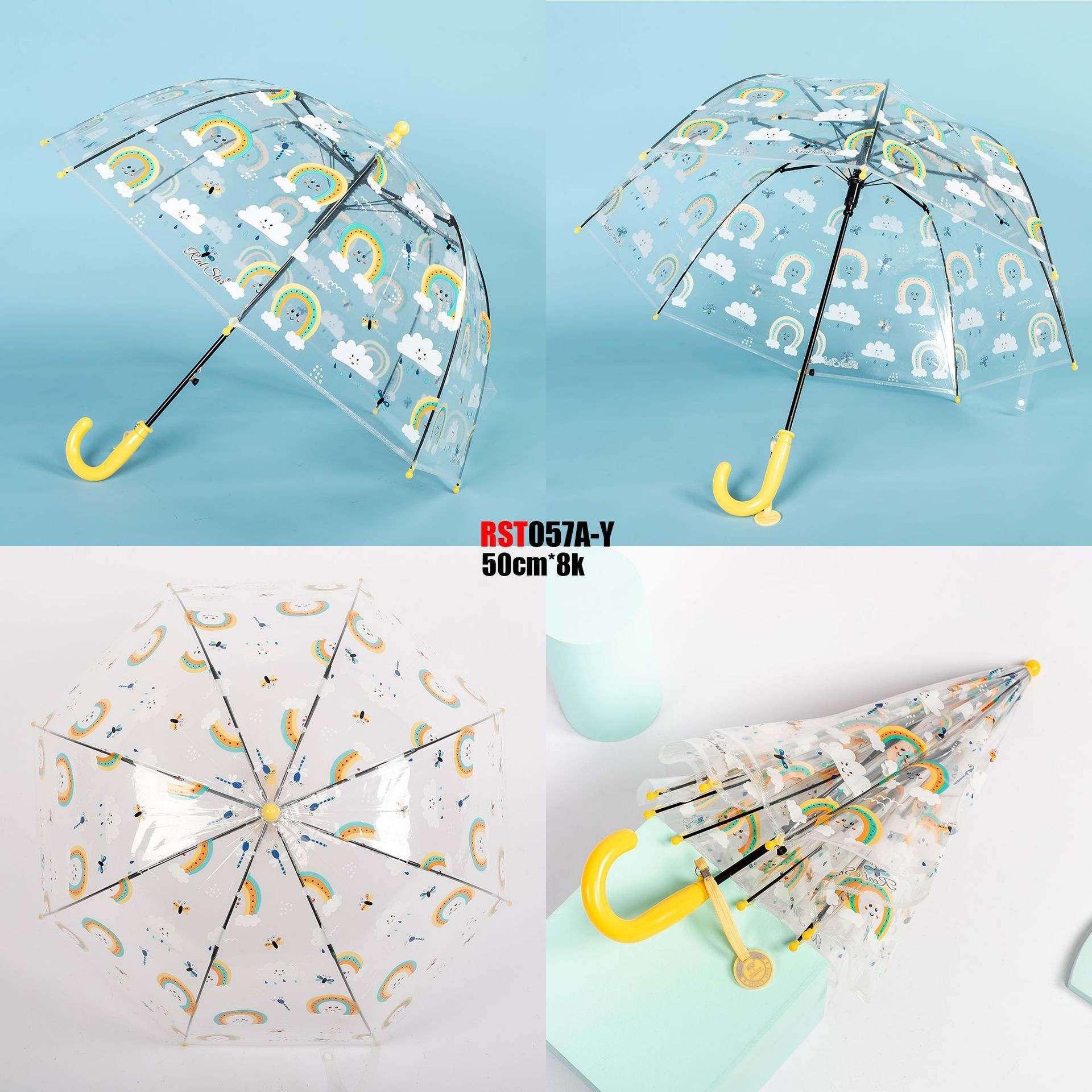 日韩向透明伞长柄彩虹雨伞卡通云朵创意可爱拱形儿童伞外贸批发