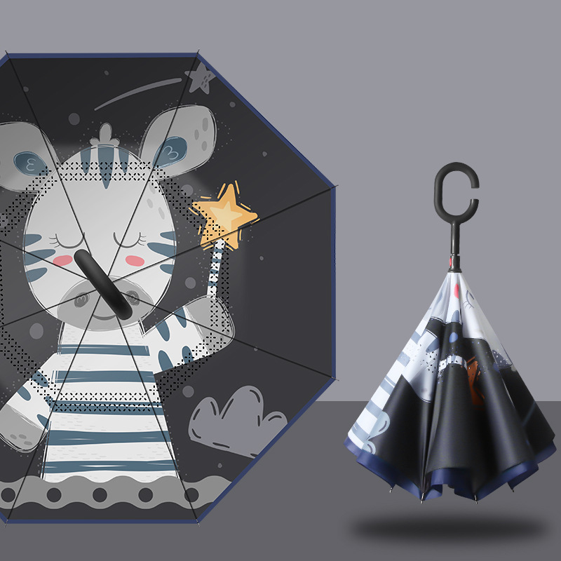 儿童雨伞小学生男女孩卡通动漫长柄伞双层反向伞幼儿园可爱晴雨伞