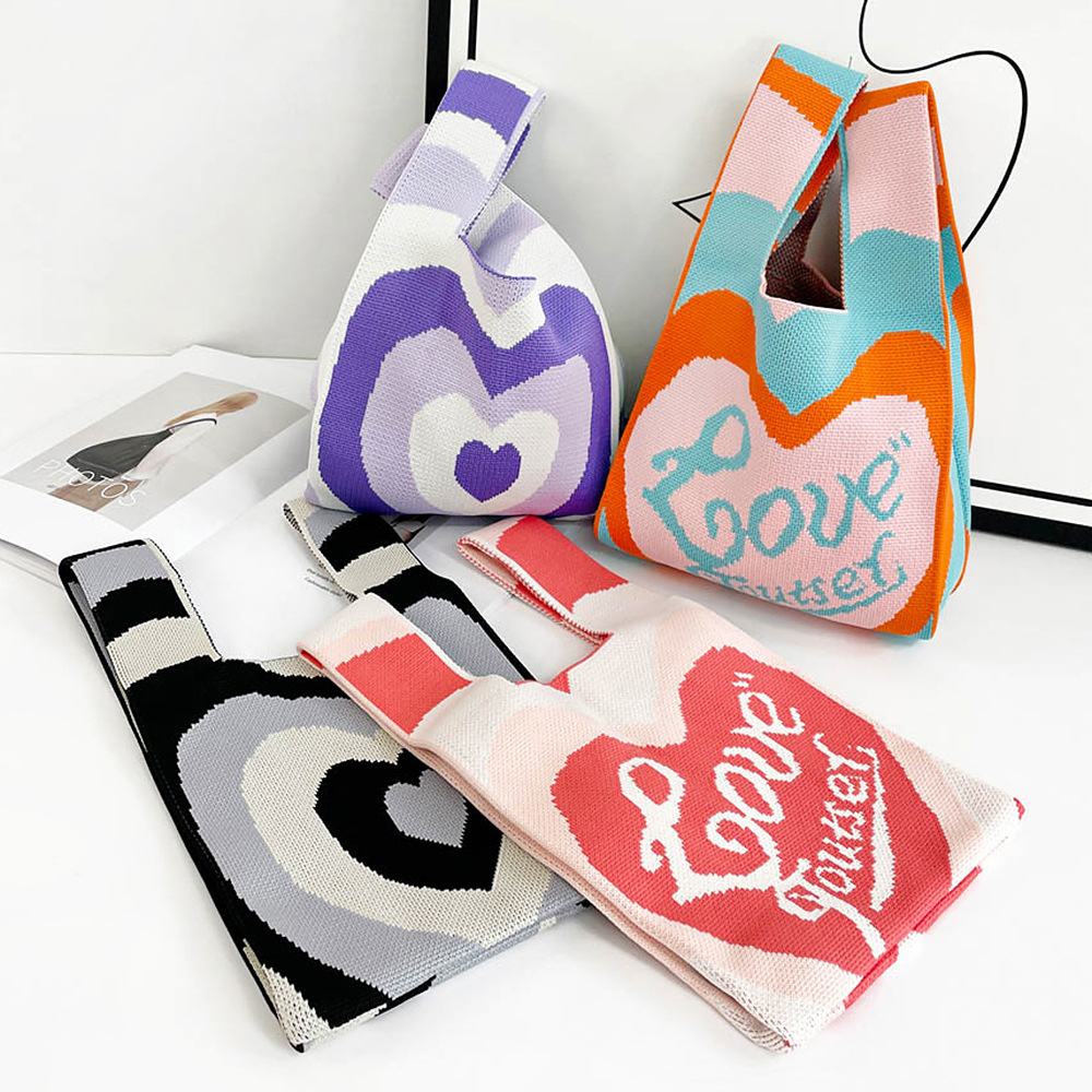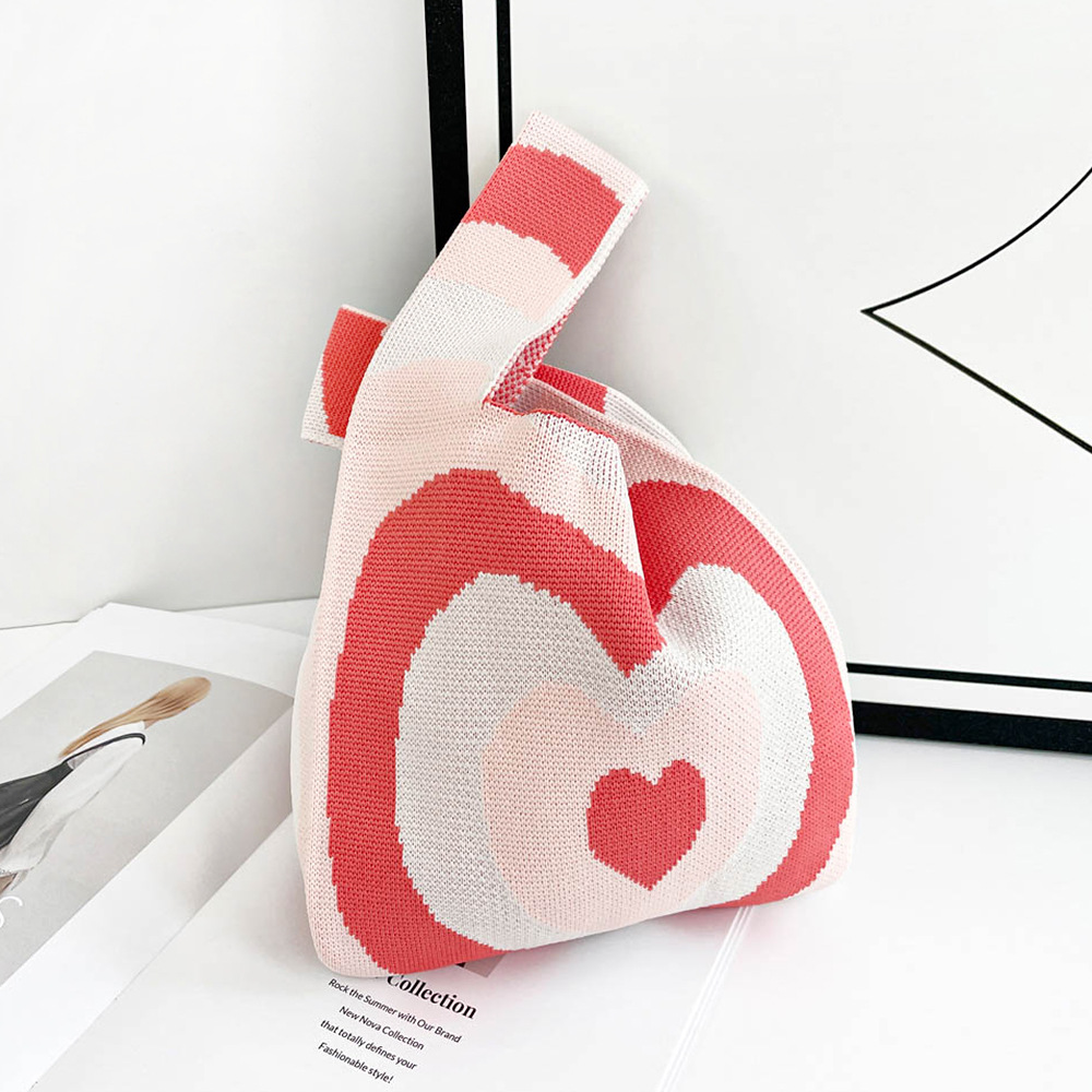 针织手机包女多巴胺彩色软编织包穿搭韩风ins撞色爱心手提包批发
