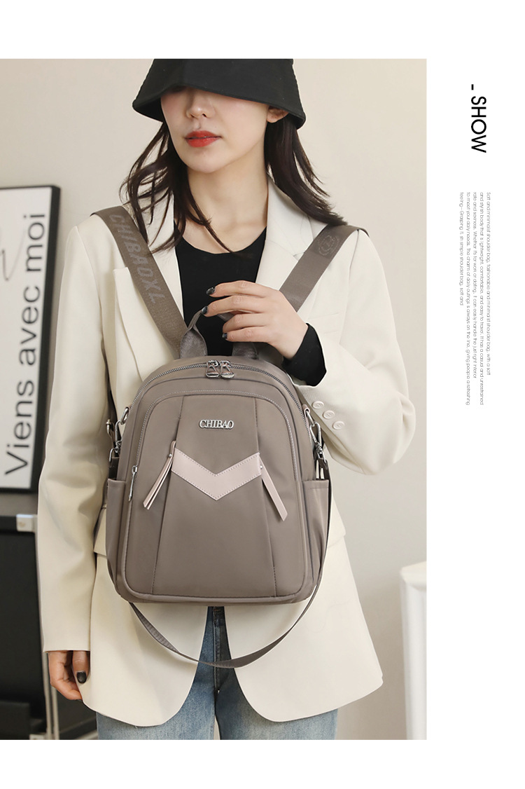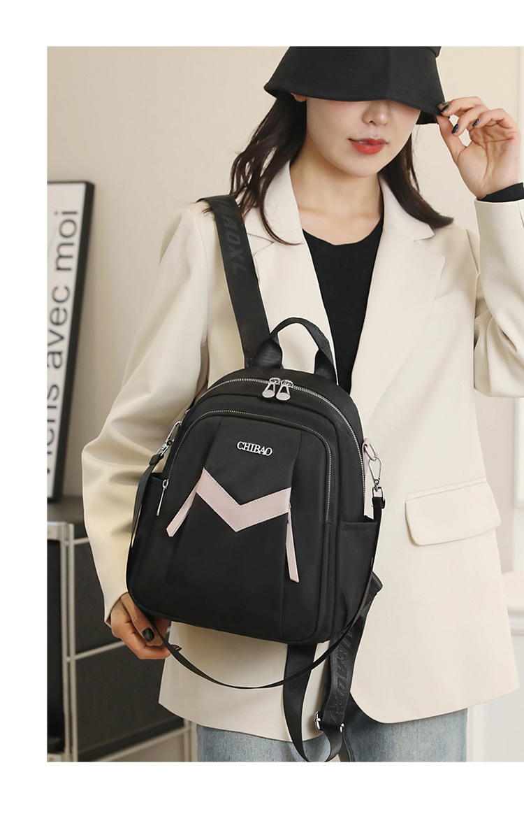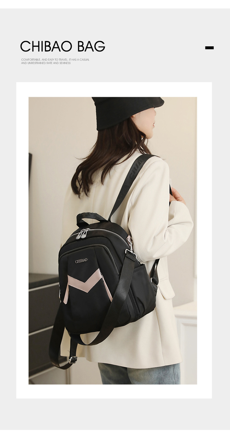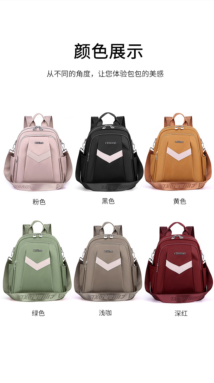 2024新款牛津布双肩包女包撞色配皮背包单肩包