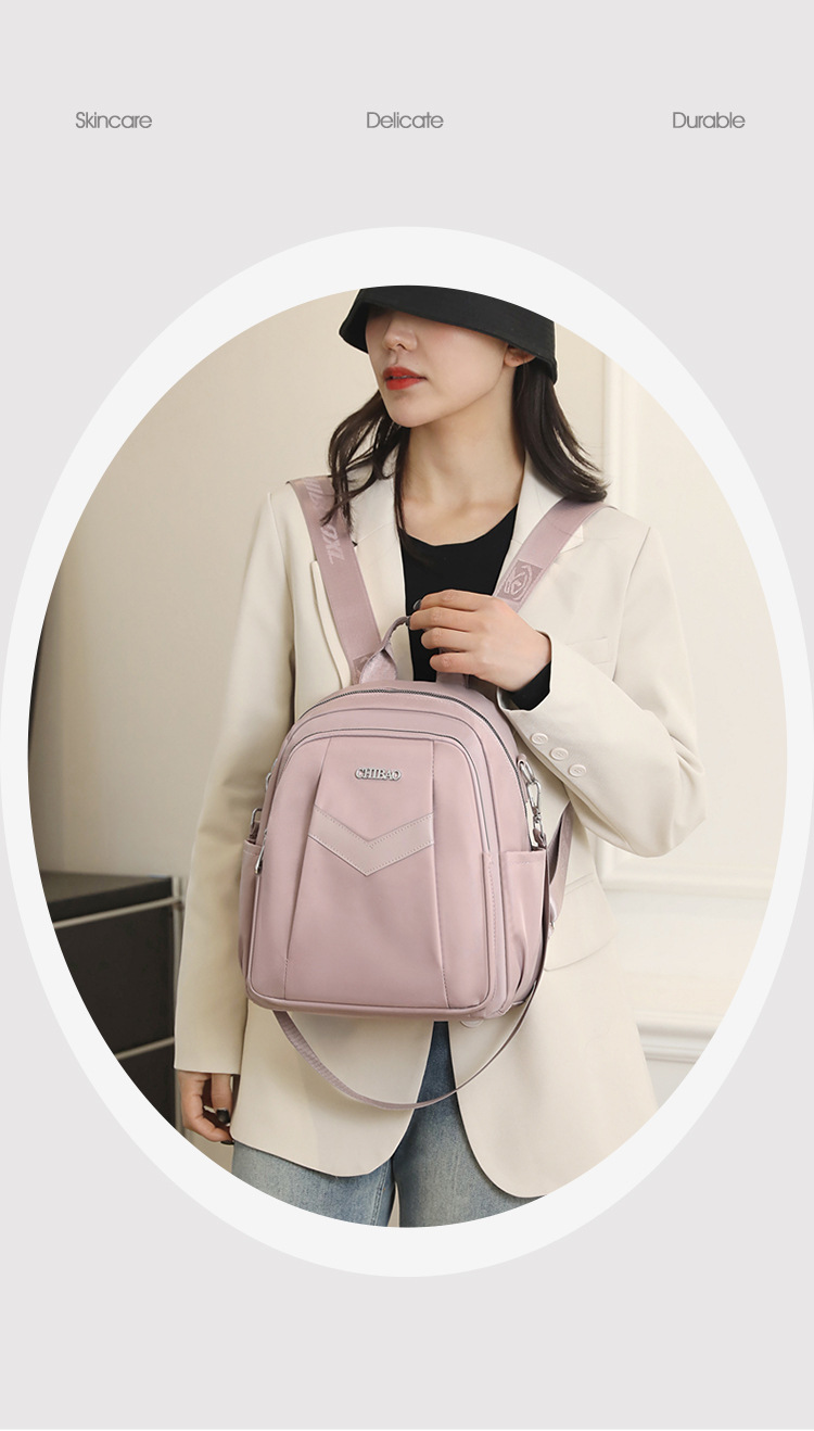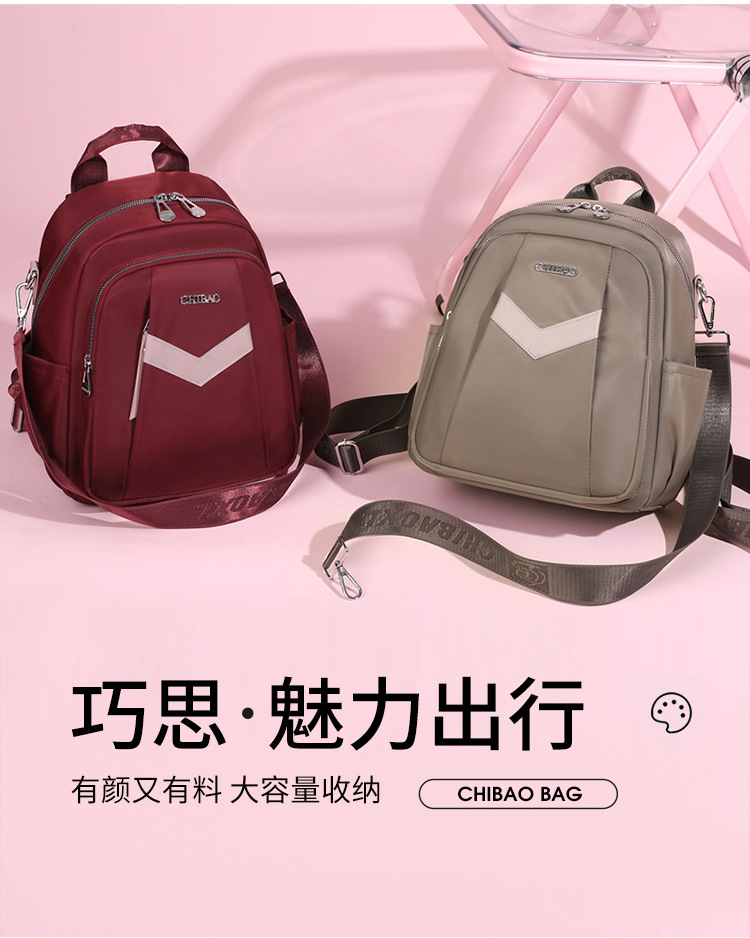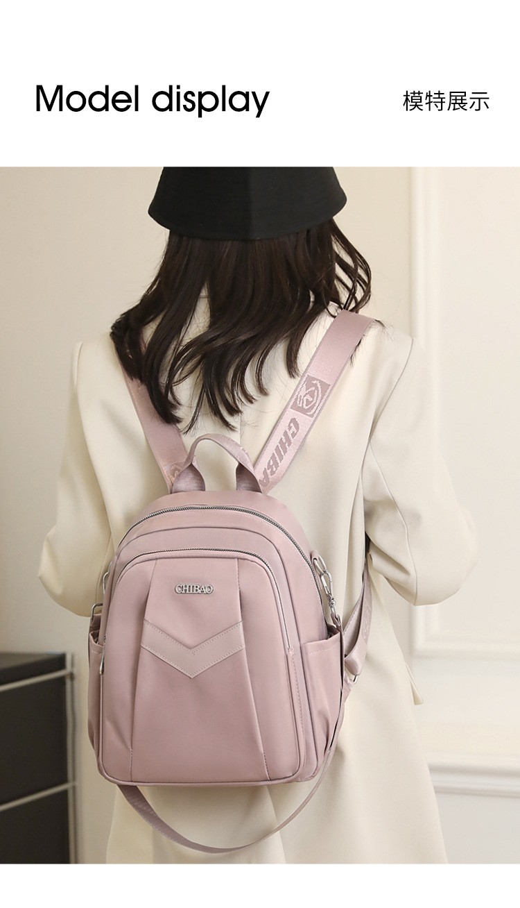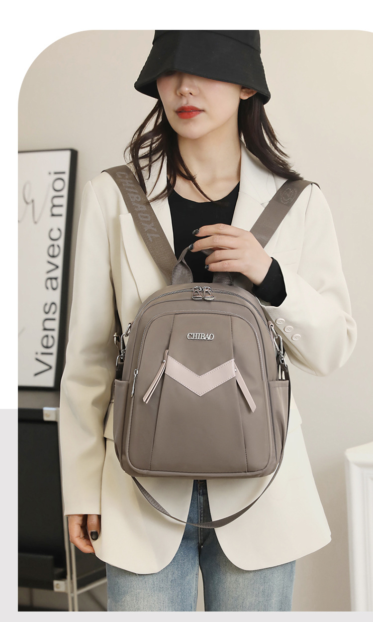 2024新款牛津布双肩包女包撞色配皮背包单肩包
