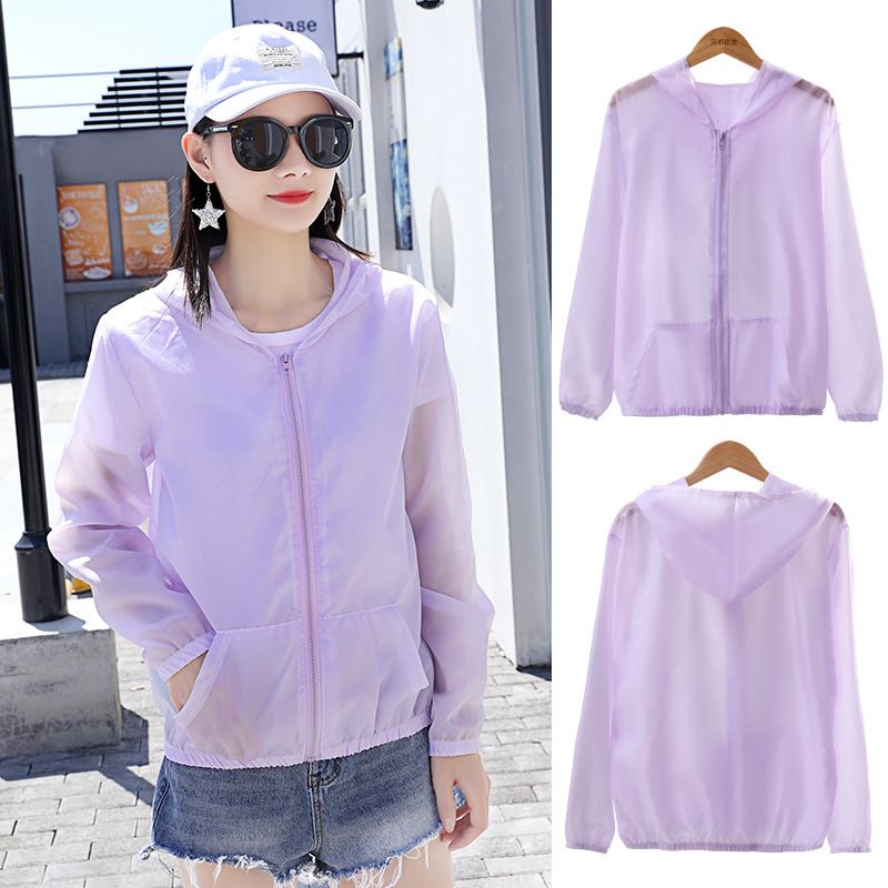 瑞雅夏季女士防晒皮肤衣 拉链连帽遮阳透气男女情侣防晒服