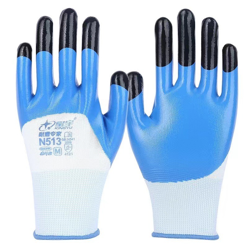 星宇手套N518耐磨丁晴纯胶防滑挂胶丁腈星宇A688乳胶劳保手套批发