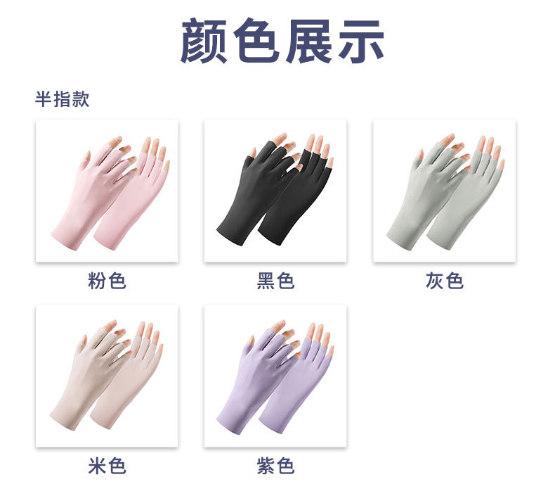 批发夏季防晒手套女士防紫外线美甲户外骑行冰丝半指手套透气薄款