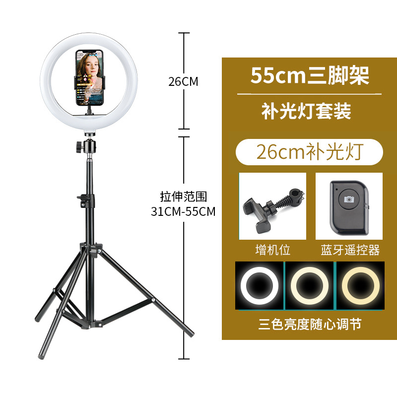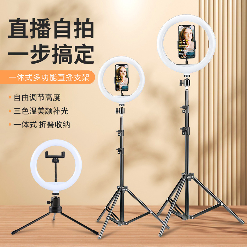 直播支架补光灯批发led补光灯10 12 13寸美颜环形手机补光灯套装
