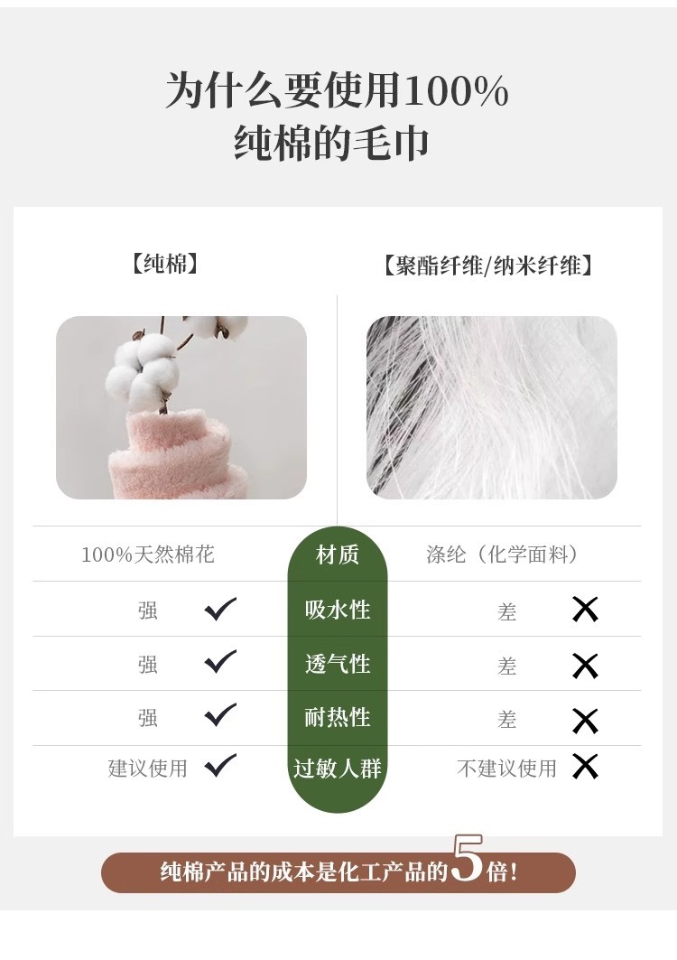 100%纯棉毛巾全棉家用洗脸不掉毛吸水柔软擦脸擦汗面巾32支加厚