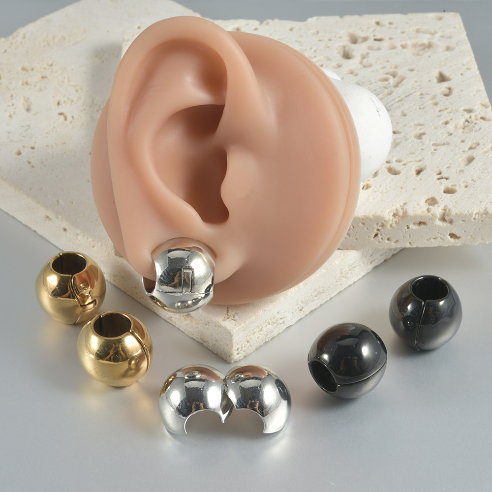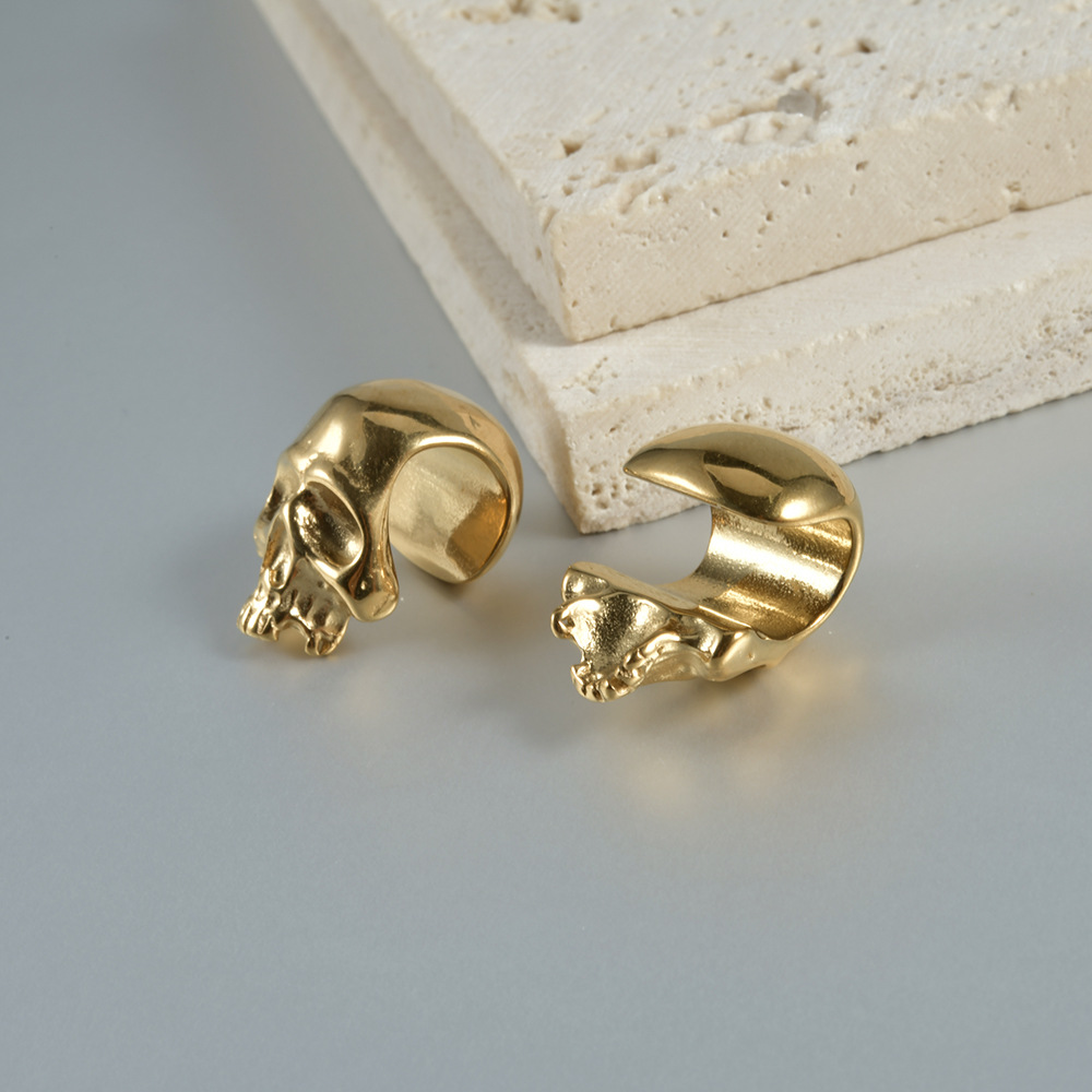 跨境骷髅头佛像耳廓 个性不锈钢镂空圆形穿刺耳环异形耳垂耳挂