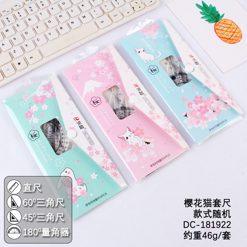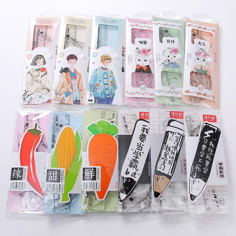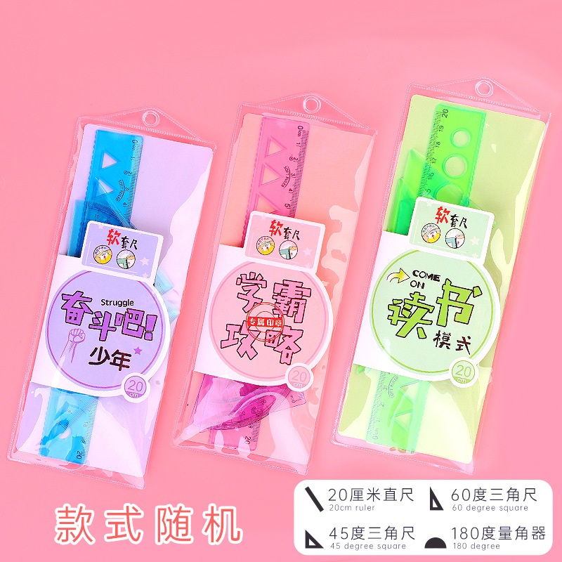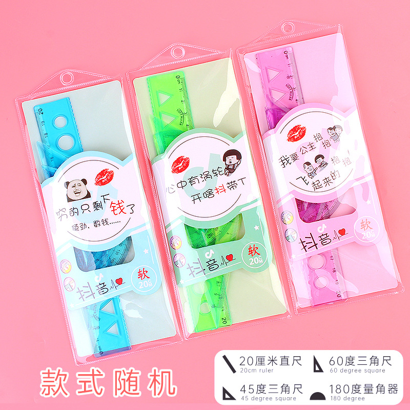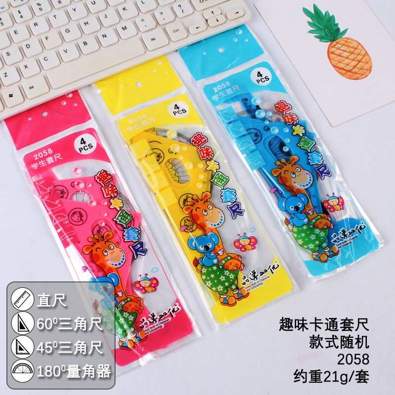 尺子套装小学生文具可爱套尺男女款儿童学习用品三角板四件套批发