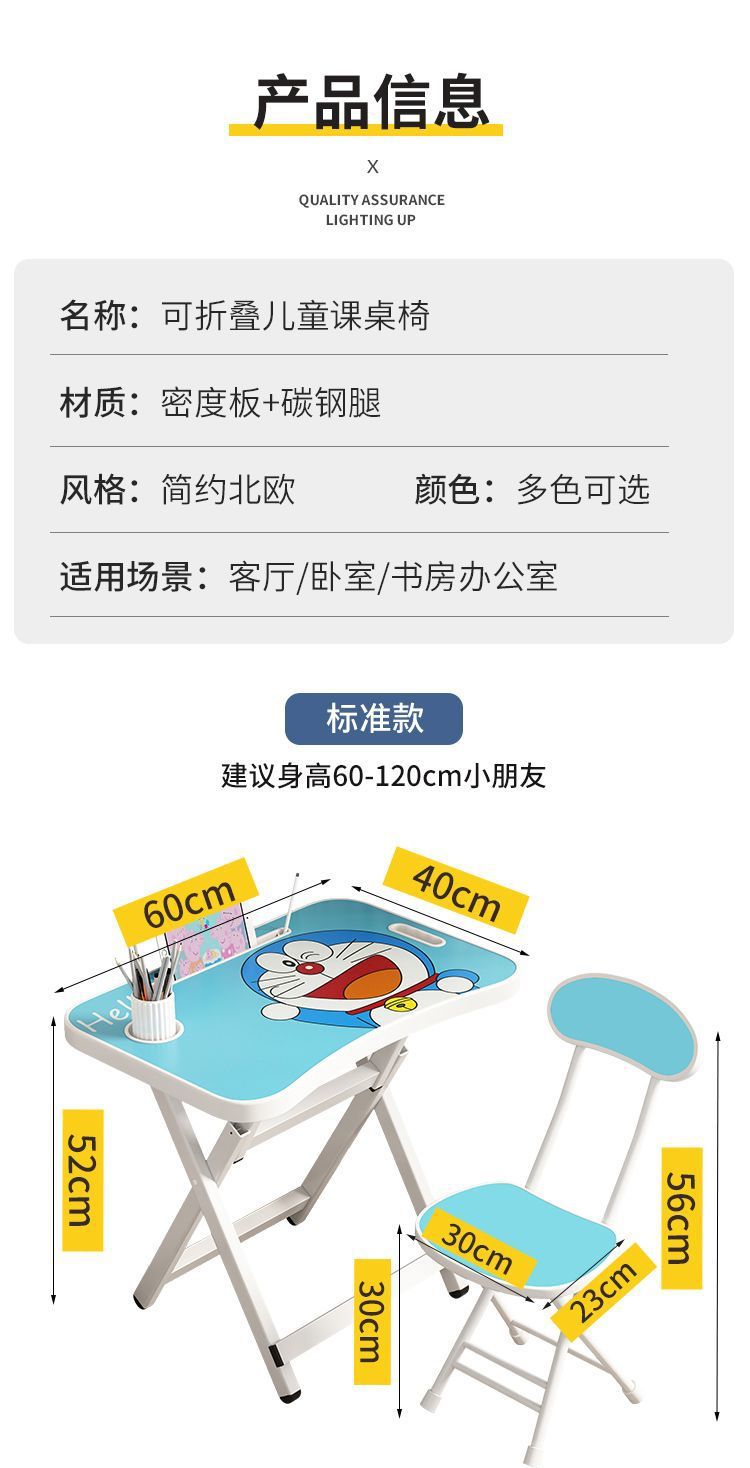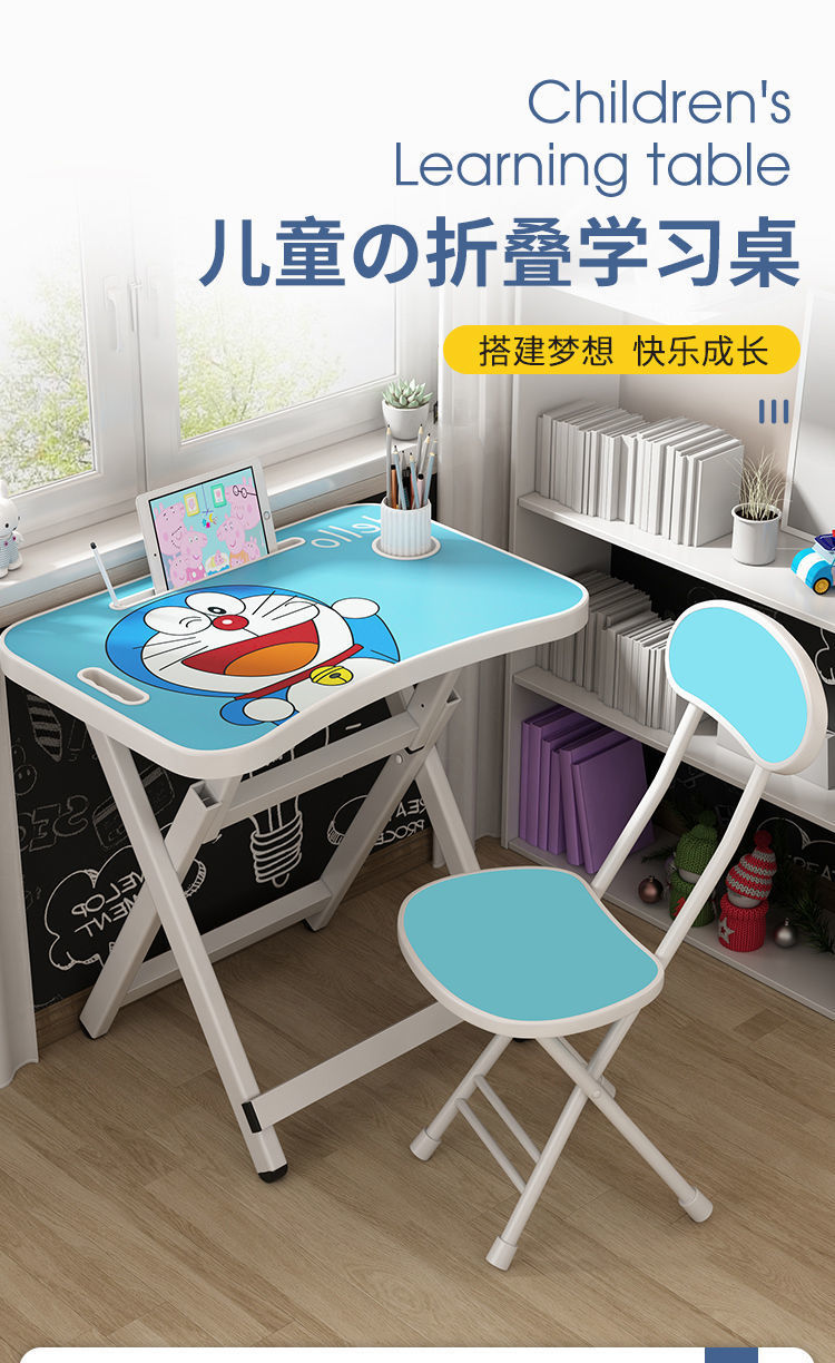 儿童学习桌可折叠书桌家用写字桌免安装儿童作业课桌桌椅套装