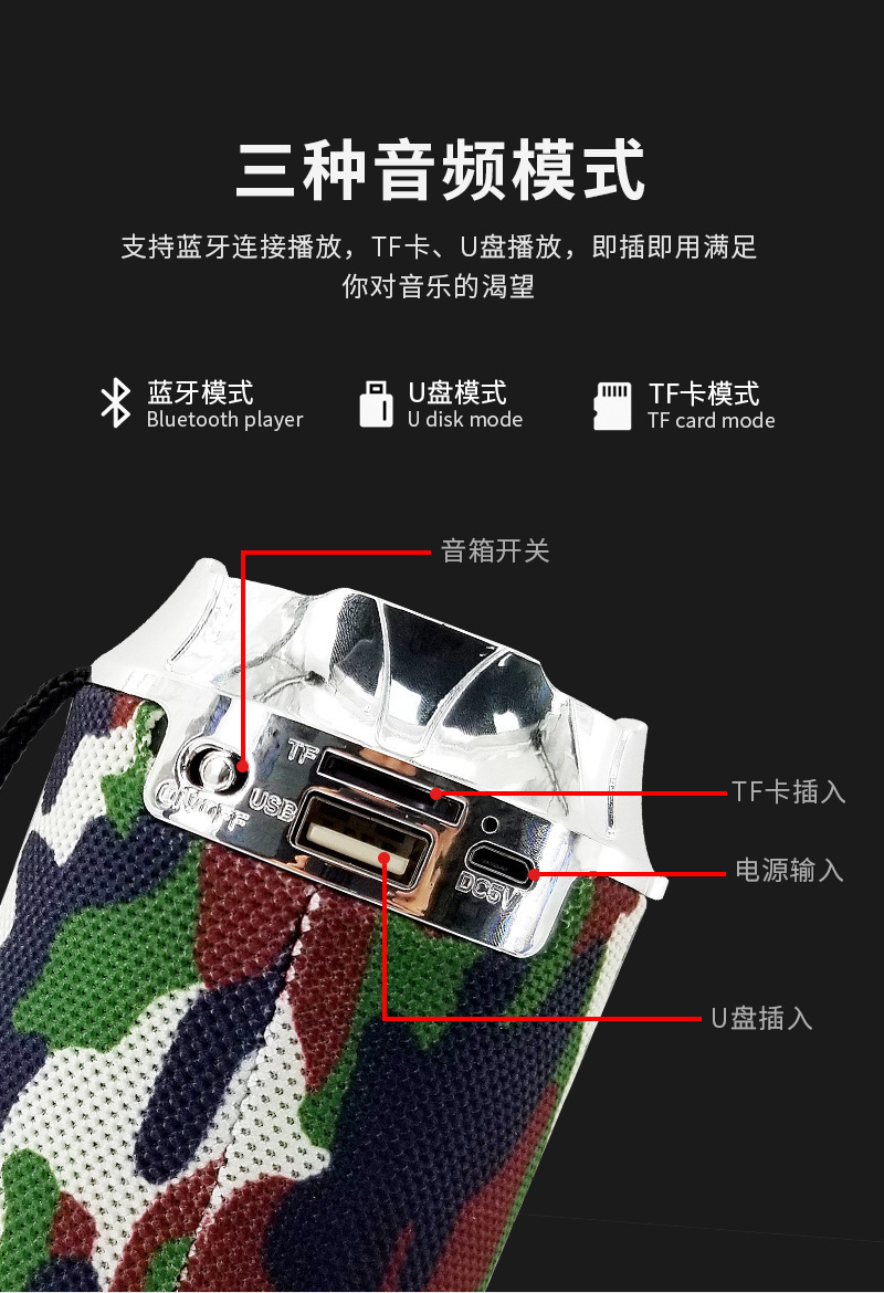 AK115手提布艺蓝牙音箱手电二合一户外便携迷你低音炮礼品音响小