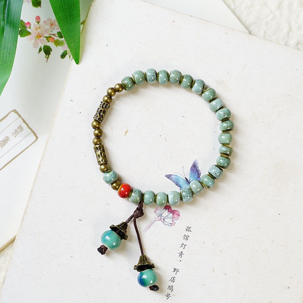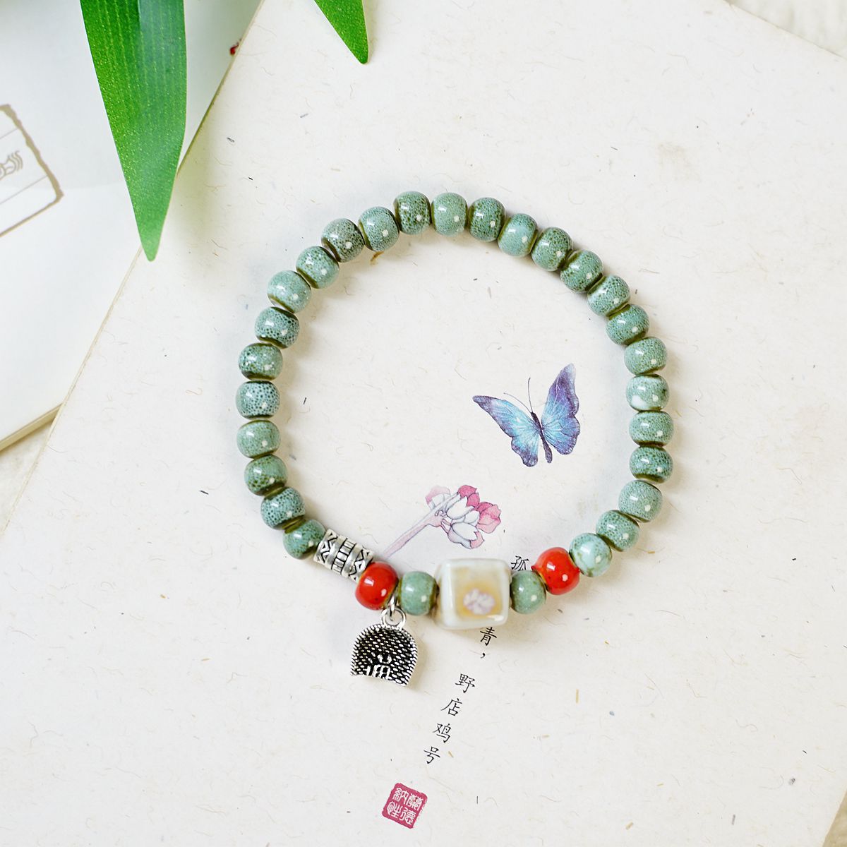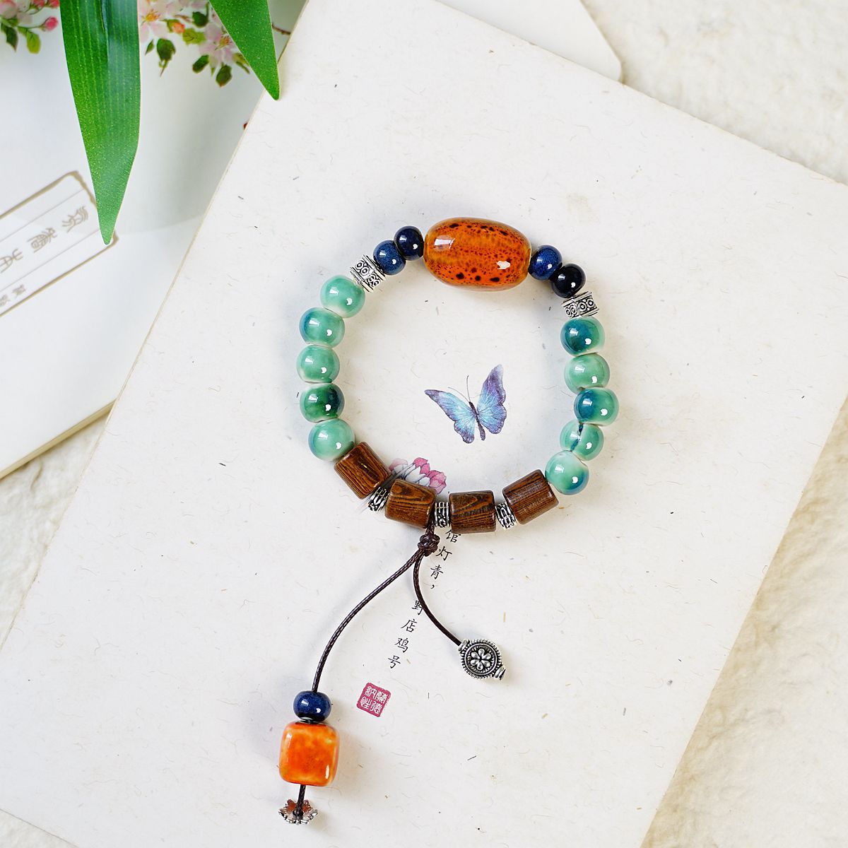 新中式叠戴景德镇陶瓷手链饰品女批发民族风文艺蝴蝶手串配饰严选