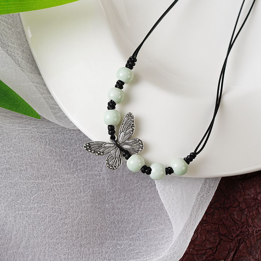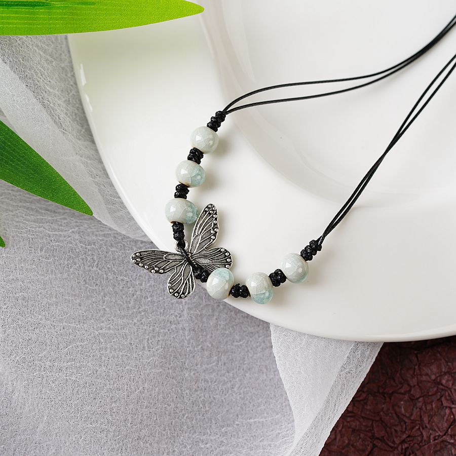新中式手作复古陶瓷蝴蝶项链女民族风国潮古风锁骨链抽绳颈链批发