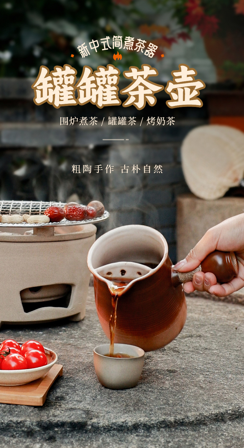 围炉煮茶粗陶茶壶陶瓷茶具家用室内罐罐茶煮茶器具全套煮烤奶茶壶