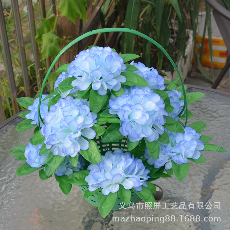 照屏仿真花批发新款清明节花篮11头仿真园菊绢花祭祀上坟花篮套装