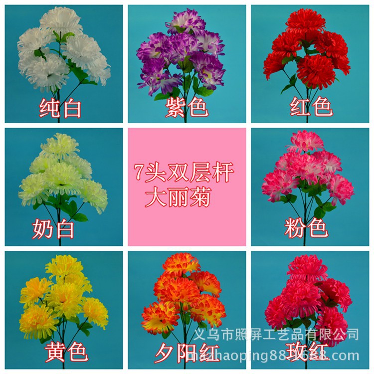 义乌照屏仿真清明节祭祀花仿真花菊花7头四层双层杆大丽菊仿真花