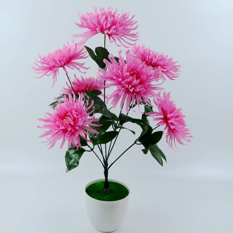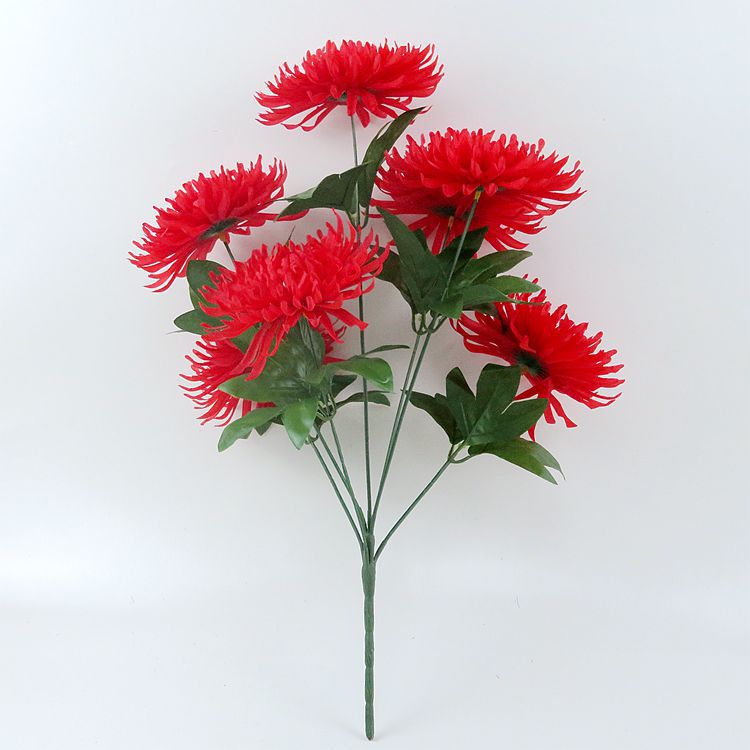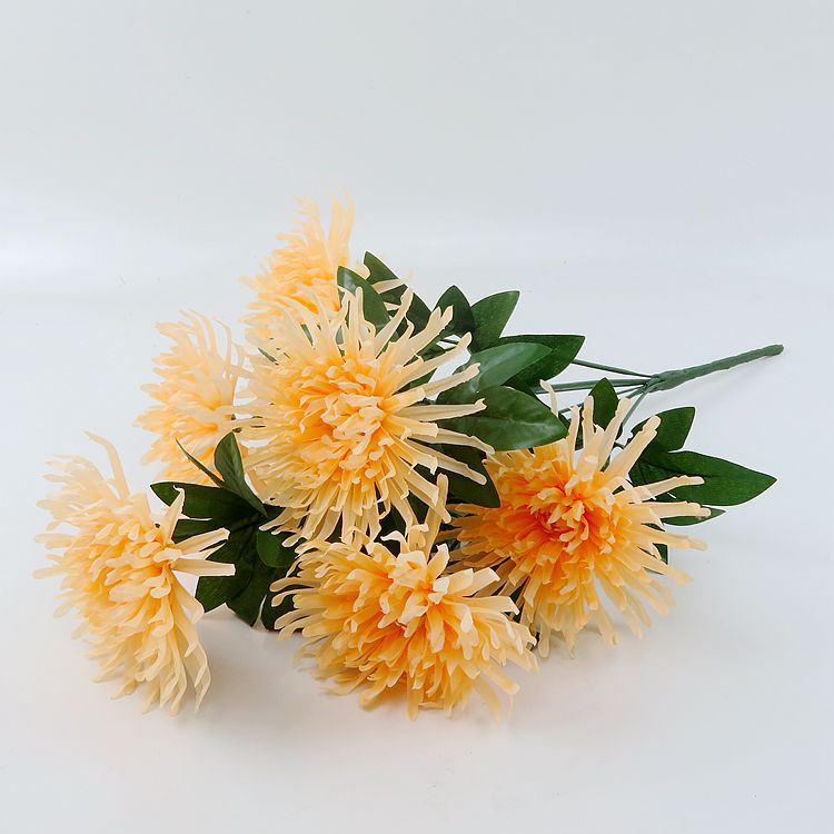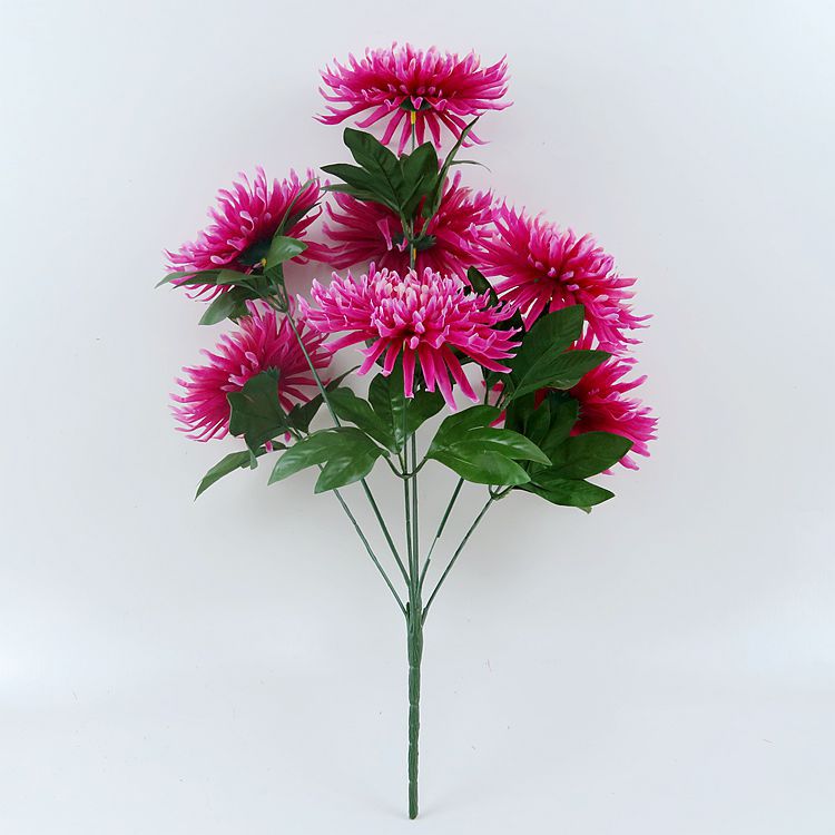 照屏仿真花厂家批发新款假花七头金丝菊绢花中粗杆清明节菊花把束