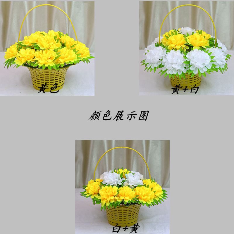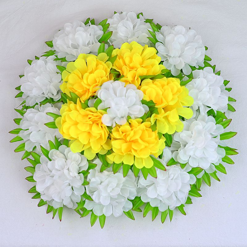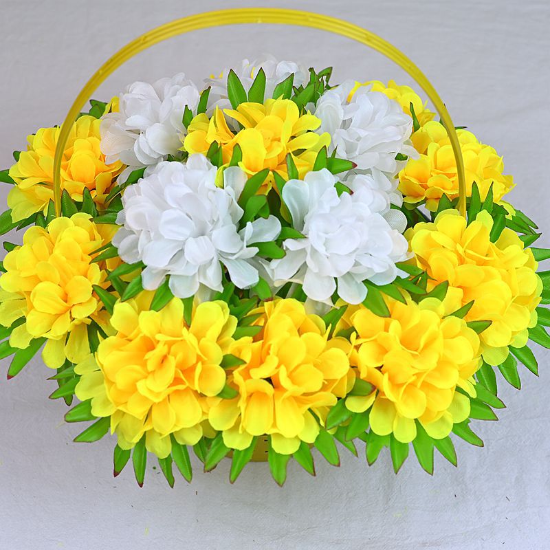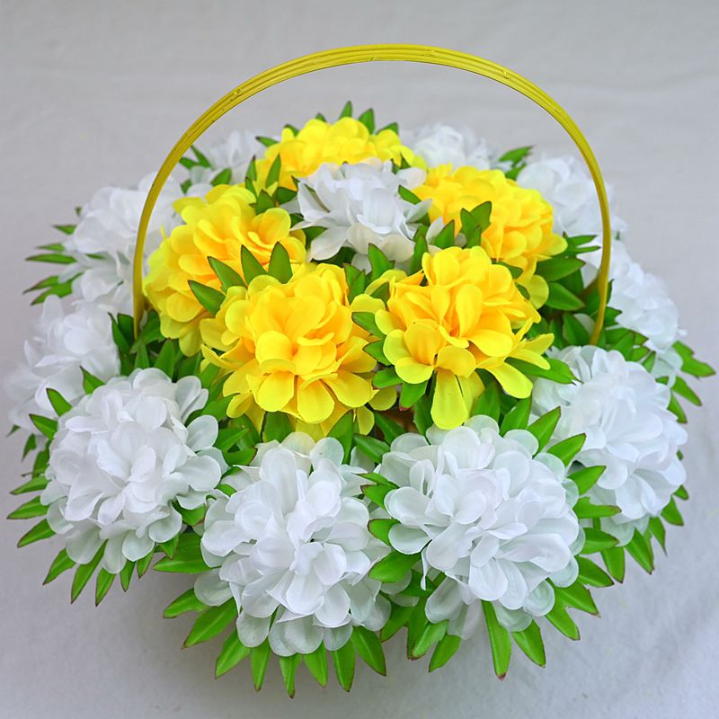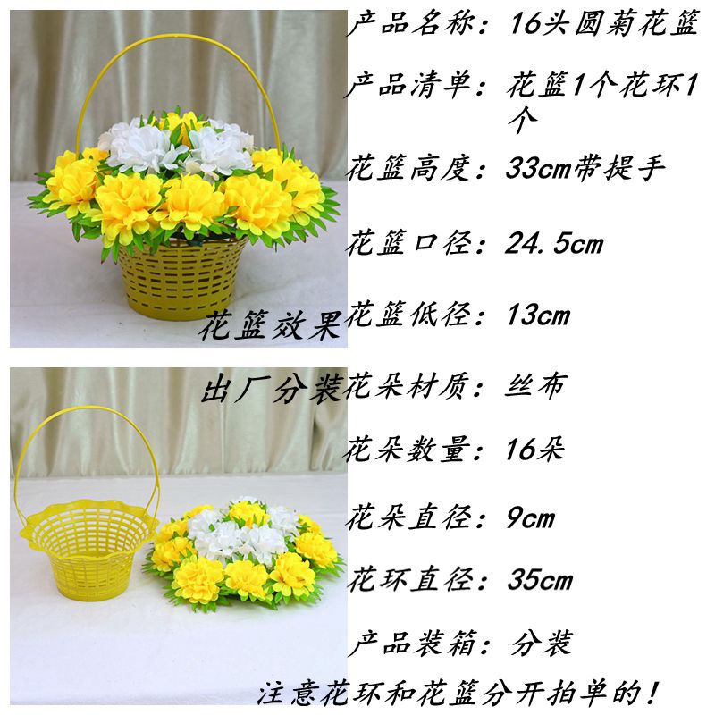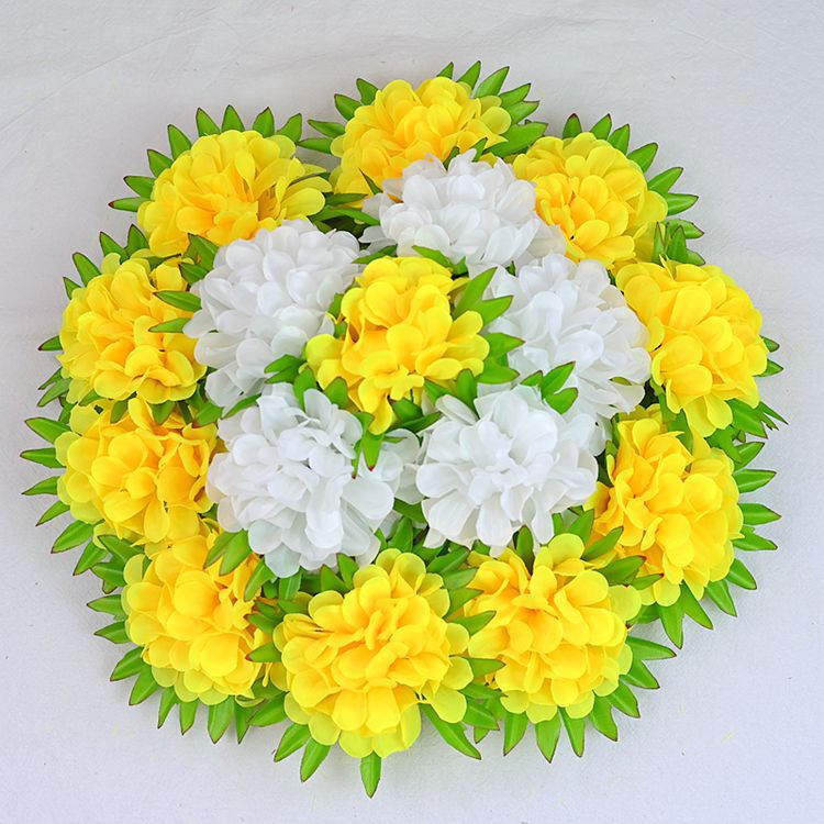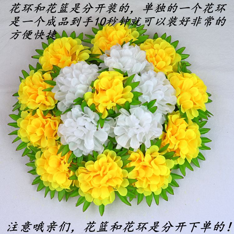 义乌照屏工艺品厂家批发仿真花假花菊花16头圆菊花环清明花花篮
