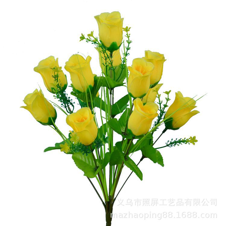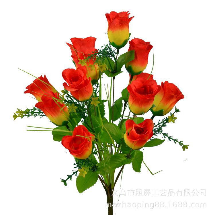 义乌照屏仿真花厂家批发一束12朵花的玫瑰花12头春蕾玫瑰绢花花束