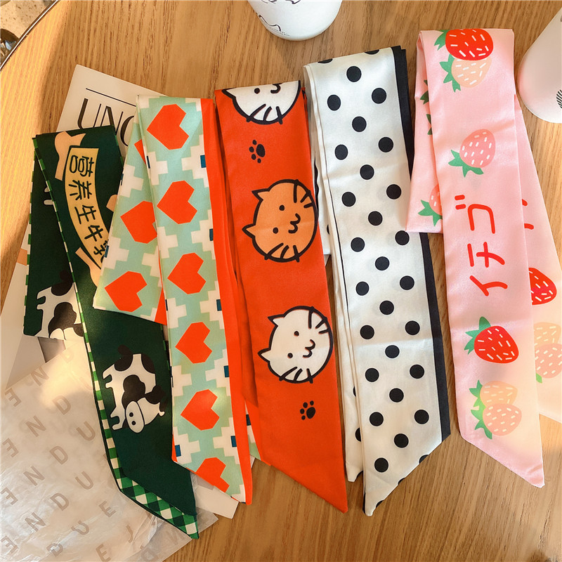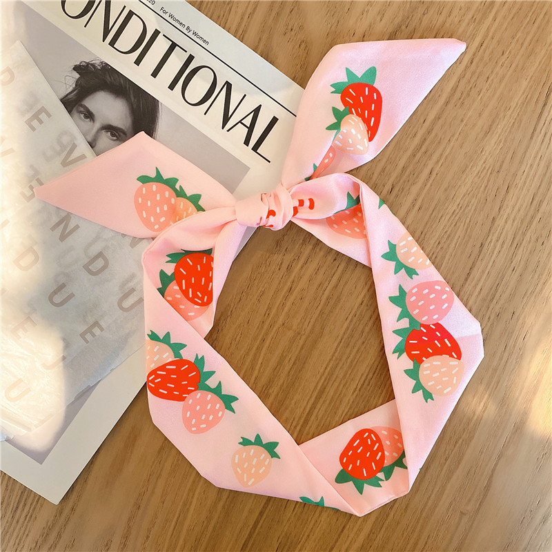 丝巾发带可爱水果图案百搭时尚绑头发扎头发飘带多功能学生围巾
