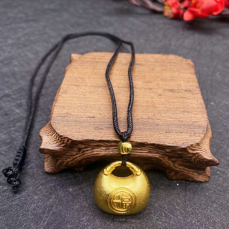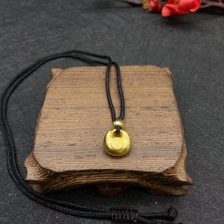 网红同款胖福吊坠项链女轻奢气质高级感黑色绳子锁包锁骨链