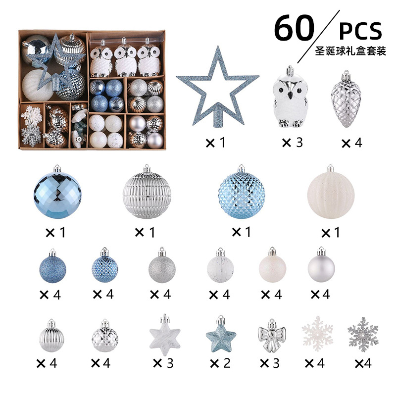 新款60pcs圣诞球圣诞装饰用品圣诞礼盒圣诞装饰品圣诞球礼盒套装