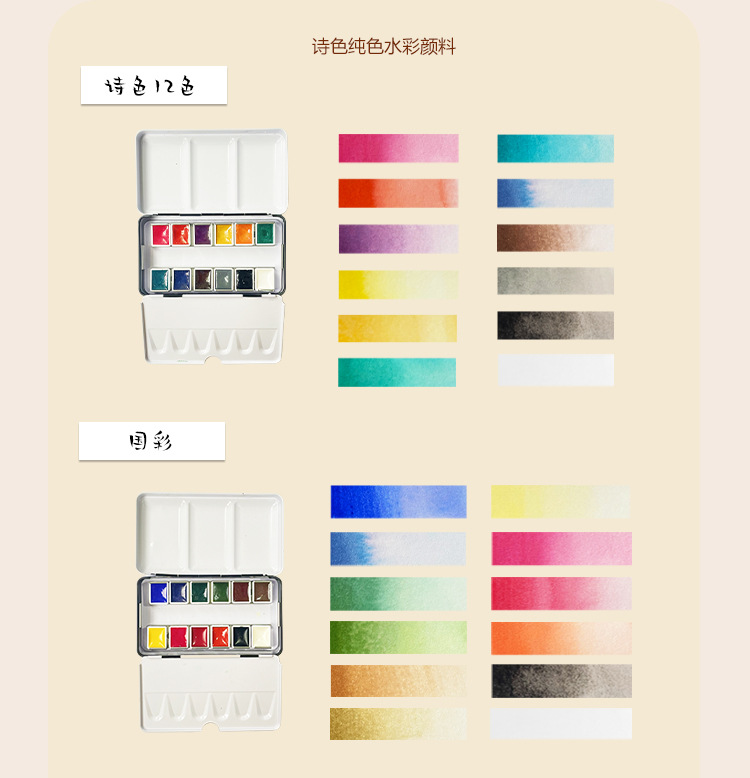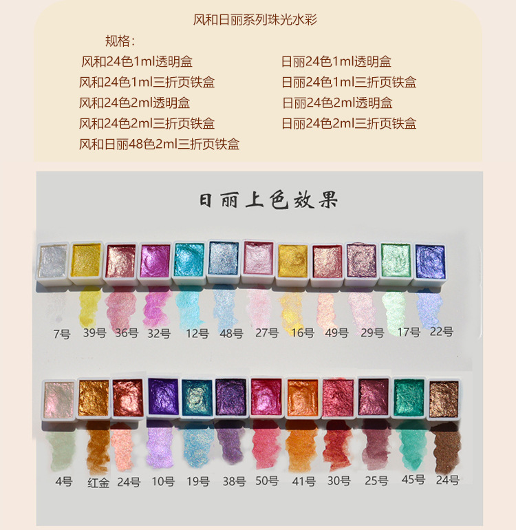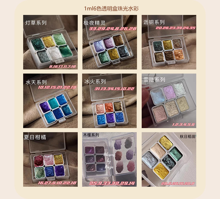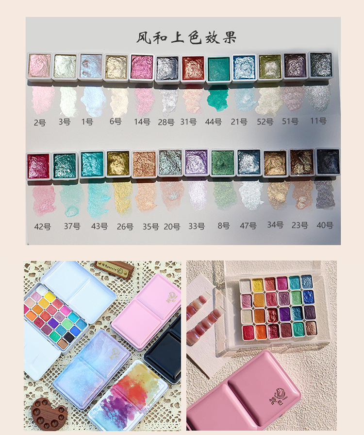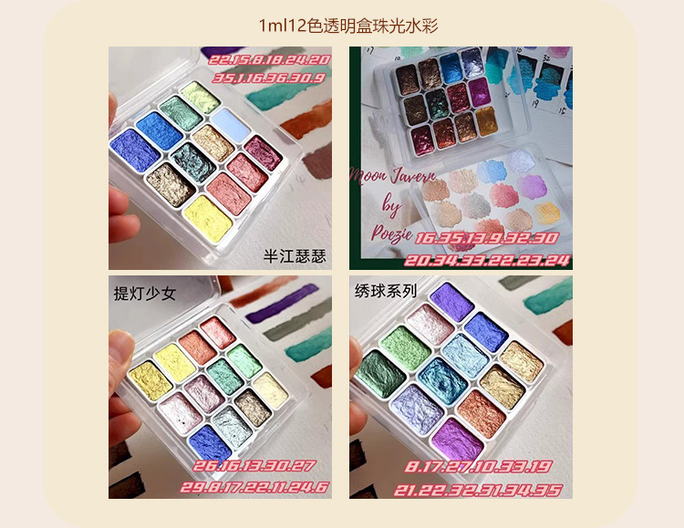 诗色日式美甲彩绘缠花晕染网红珠光纯色水彩手工固体颜料绘画1ml