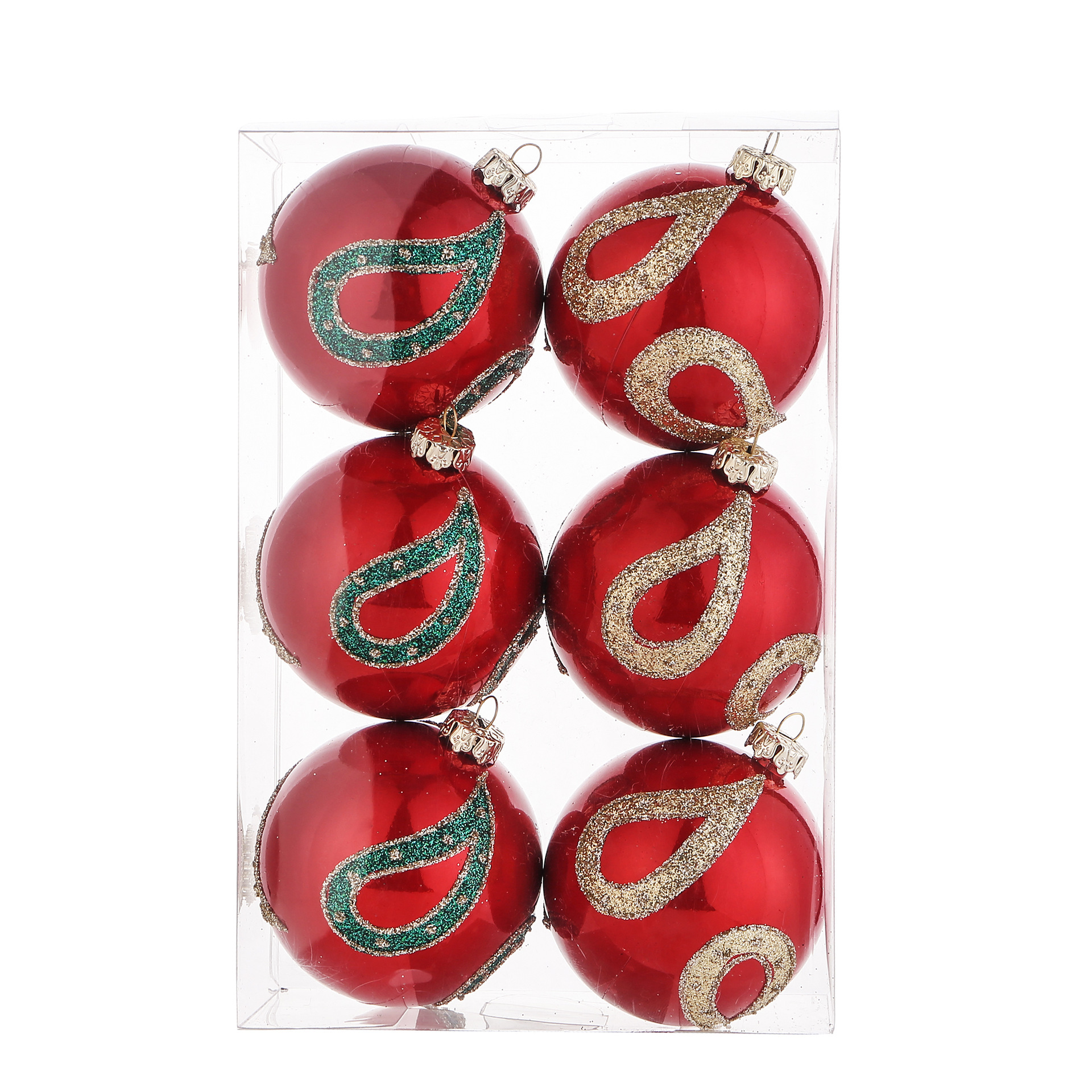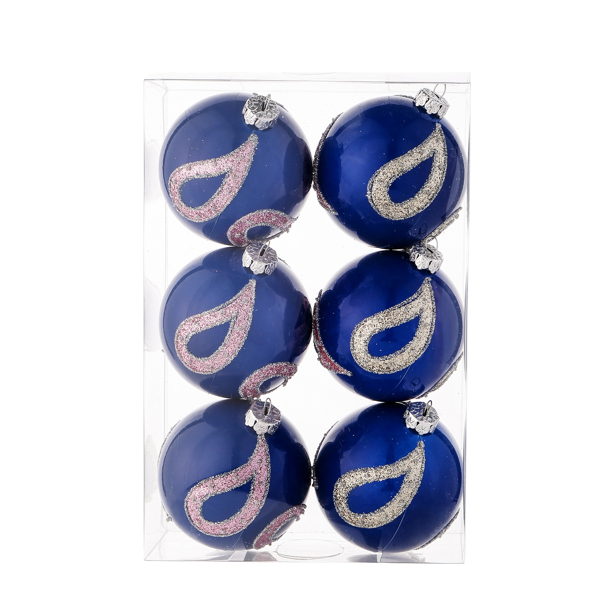 亚马逊6cm套6个礼盒圣诞吊饰圣诞树装饰圣诞球精品手绘圣诞球