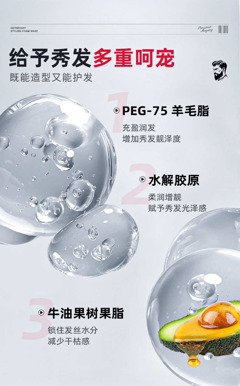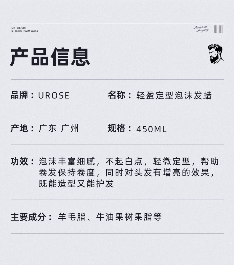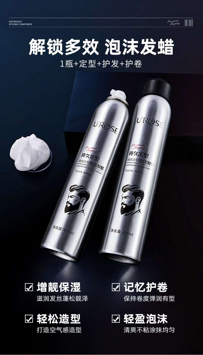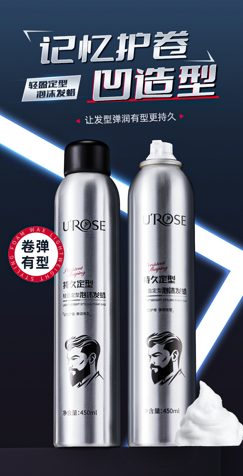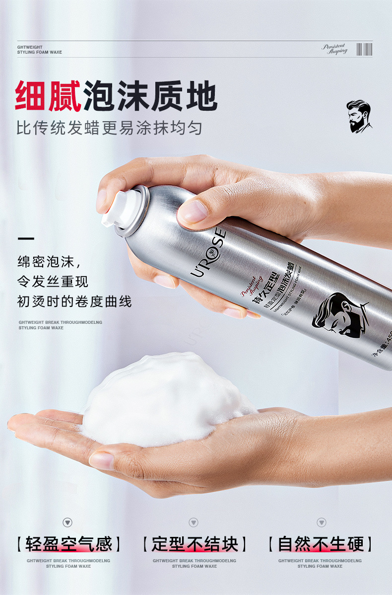 UROSE轻盈定型泡沫发蜡卷发保湿定型喷雾发胶不发硬弹力素啫喱批
