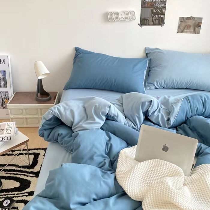 ins水洗棉床上用品四件套床单被套被罩床笠款学生宿舍三件套批发