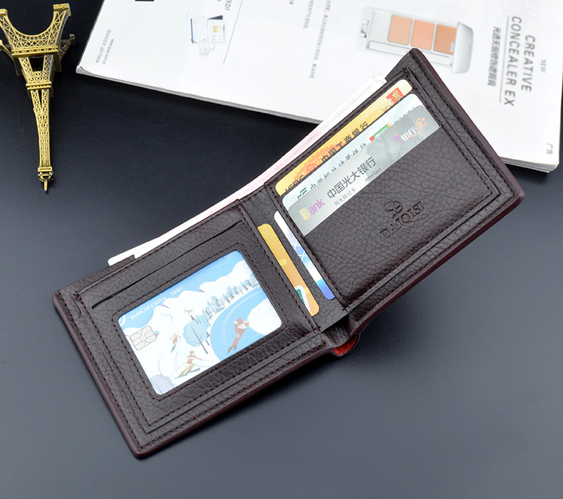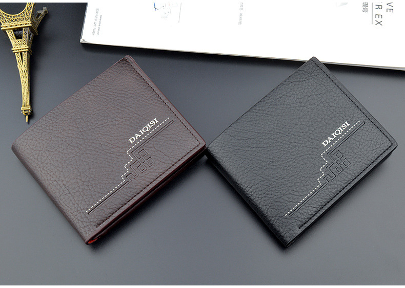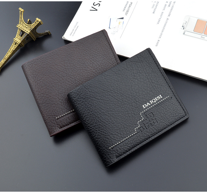 新款男士钱包男短款时尚简约休闲钱夹男青年薄款荔枝纹横款软皮夹