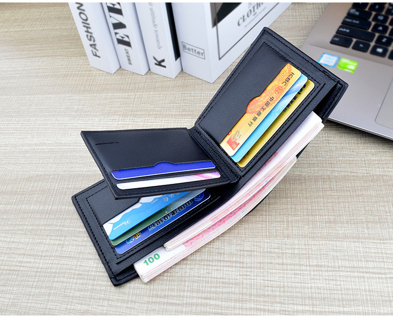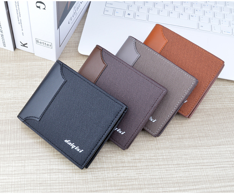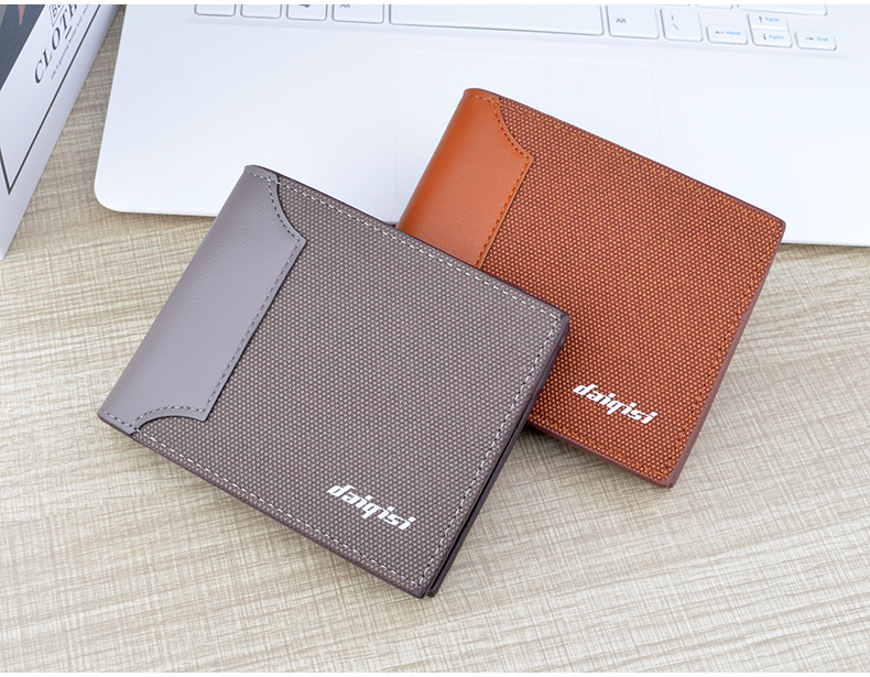 新款男士钱包男短款钱夹男青年多卡位卡包时尚拼接休闲薄款软皮夹