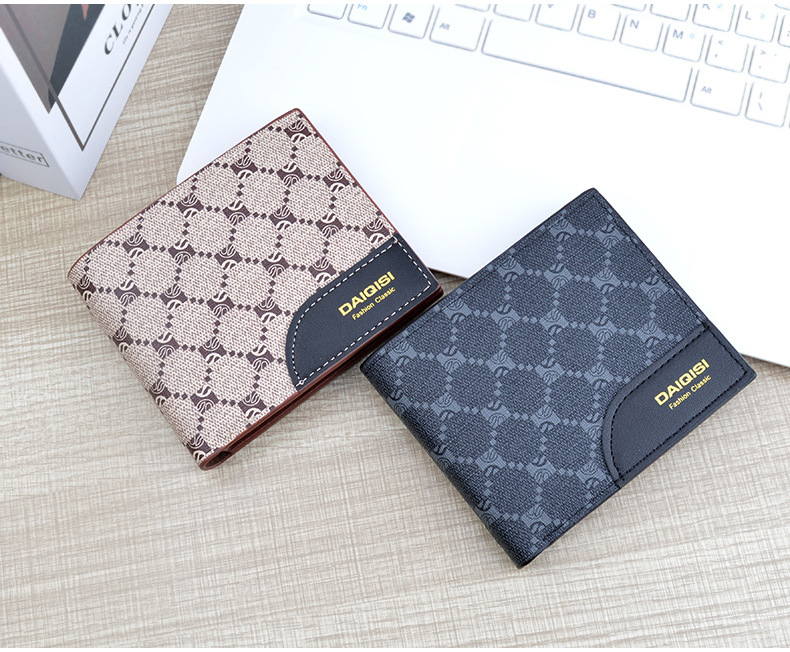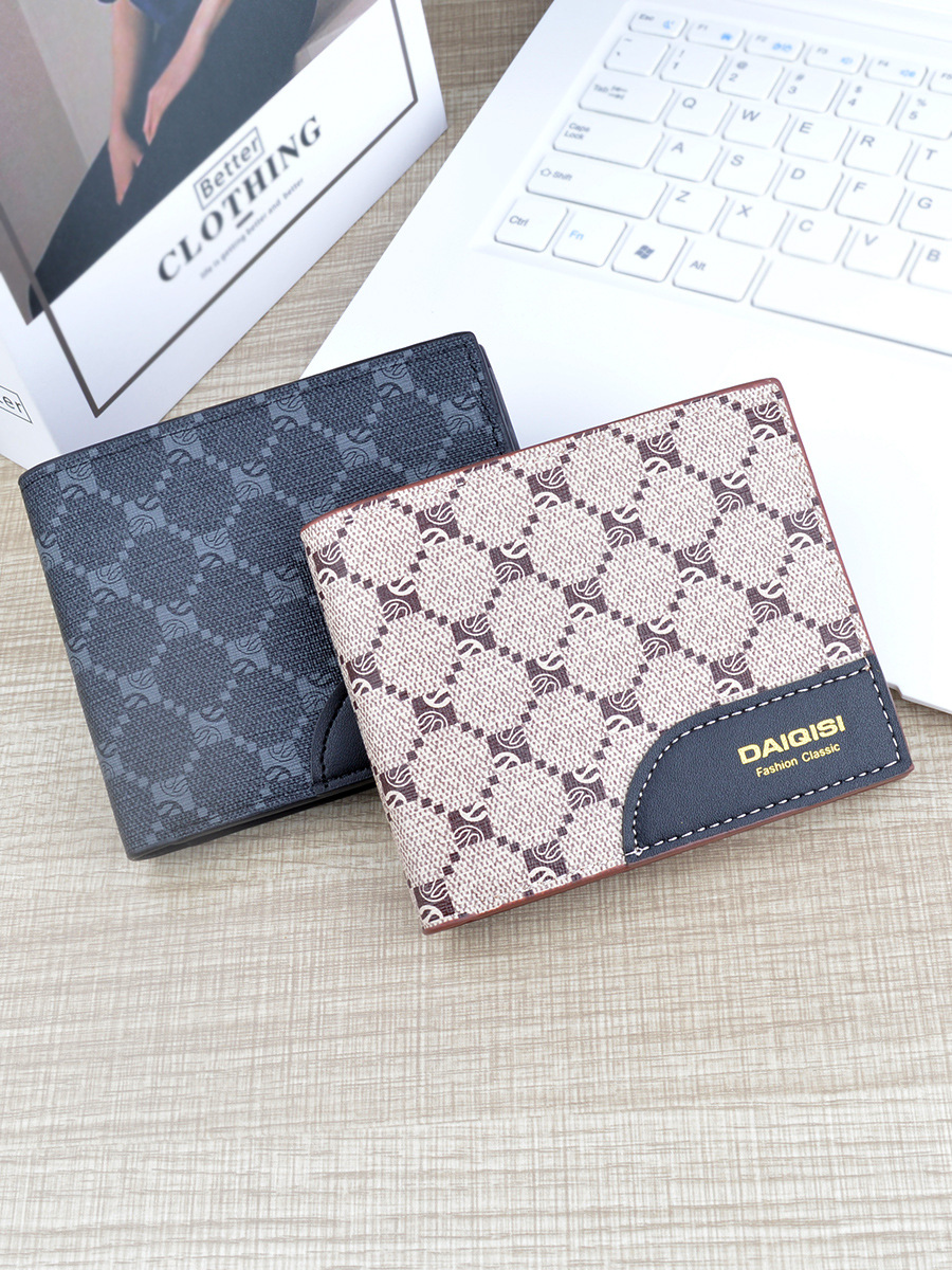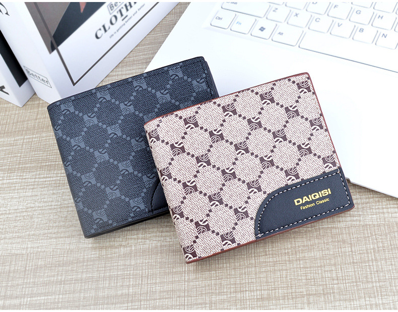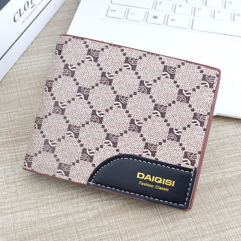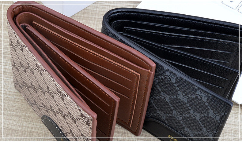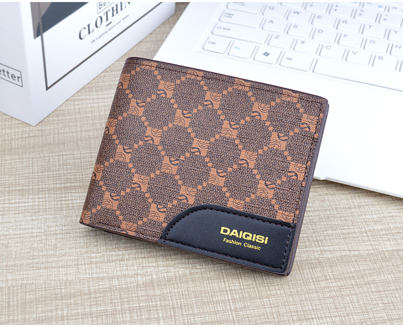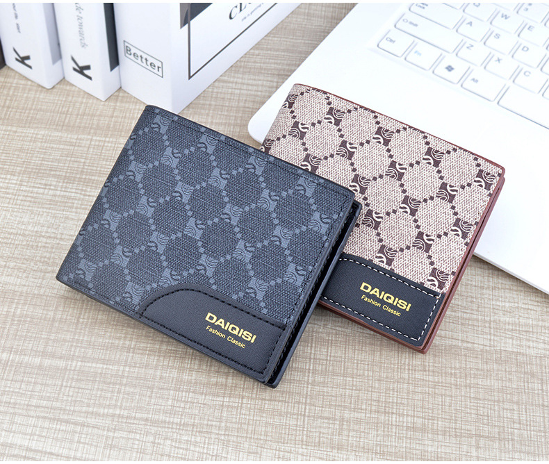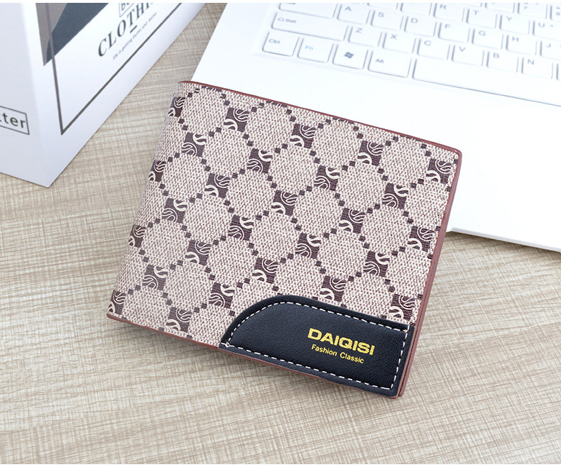 新款男士钱包男短款多卡位卡包欧美复古钱夹男青年格纹印花软皮夹