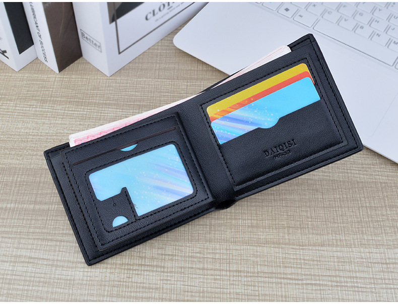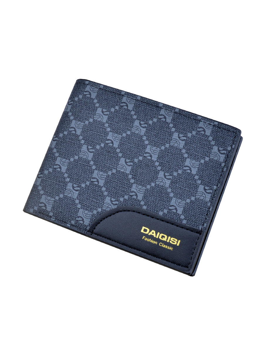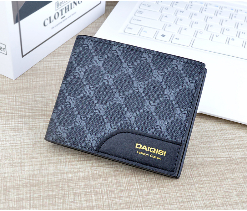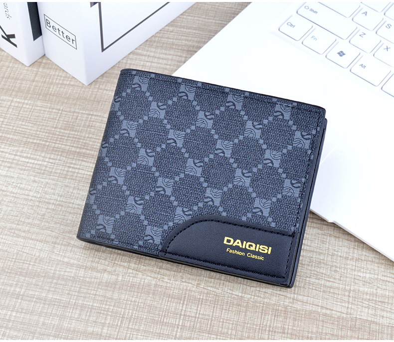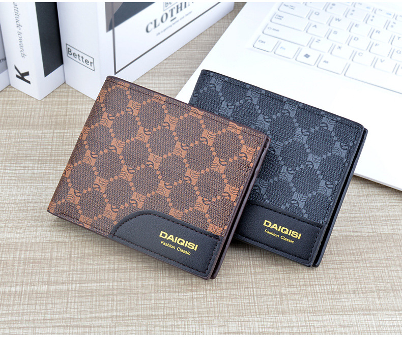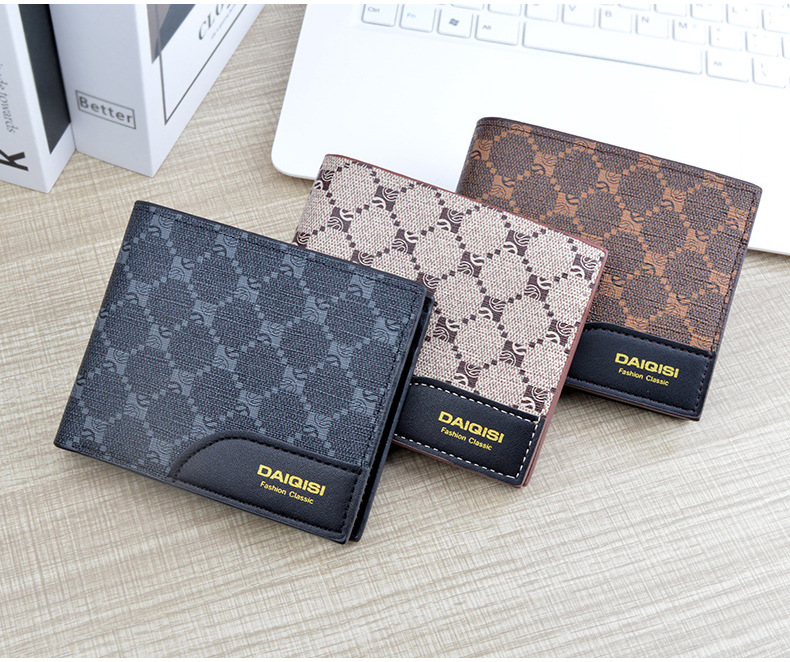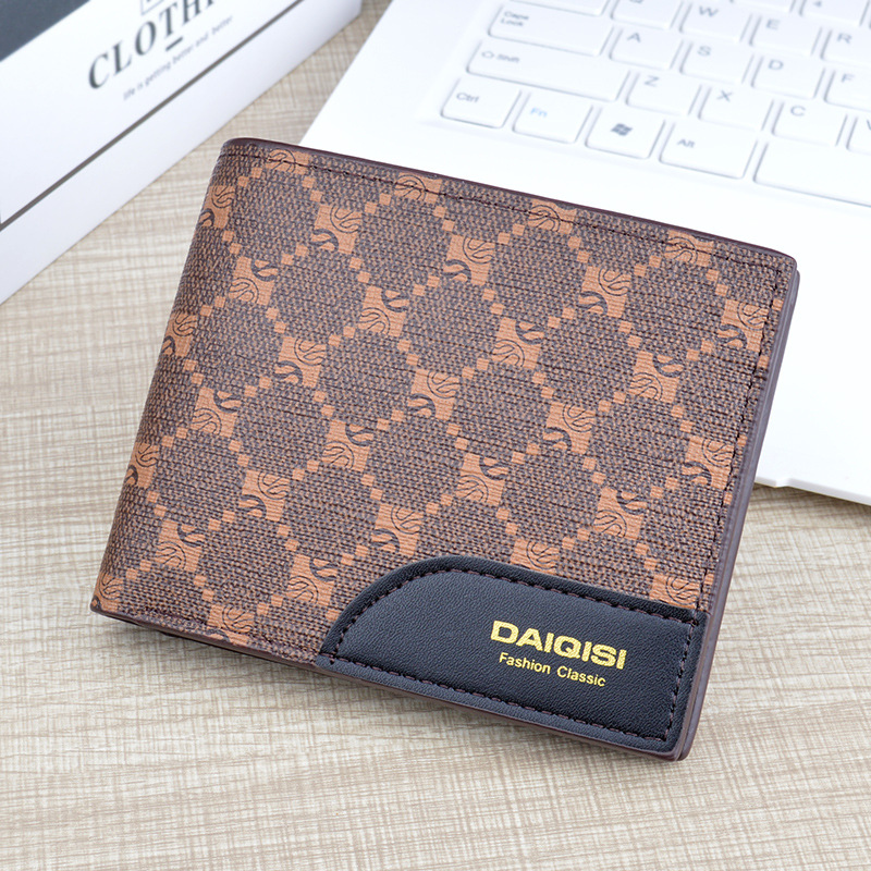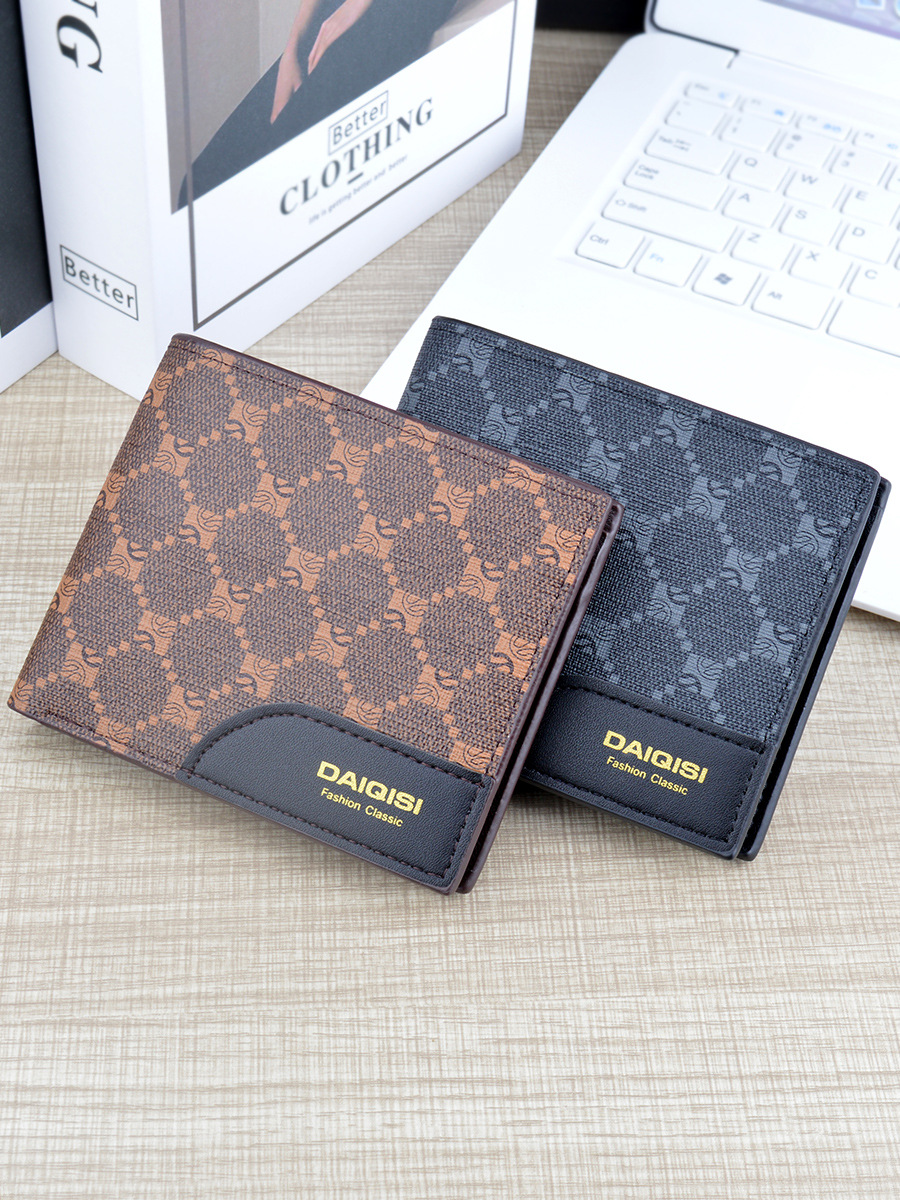 新款男士钱包男短款多卡位卡包欧美复古钱夹男青年格纹印花软皮夹