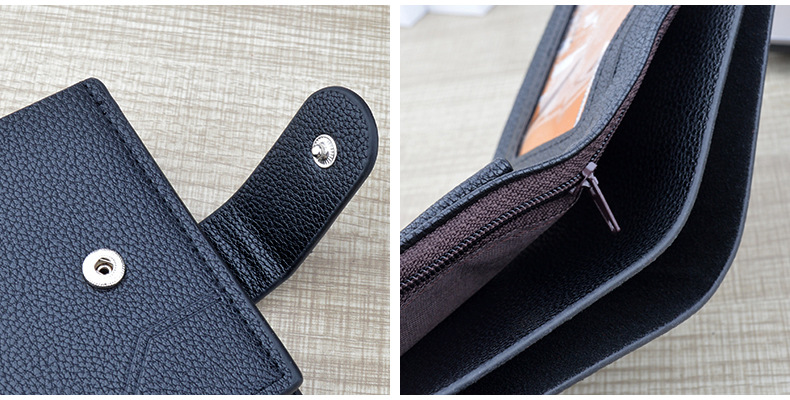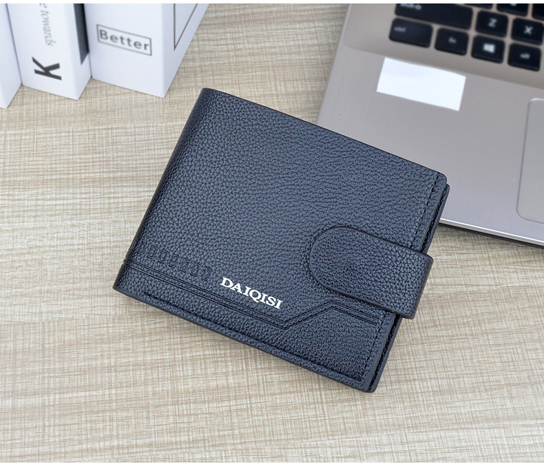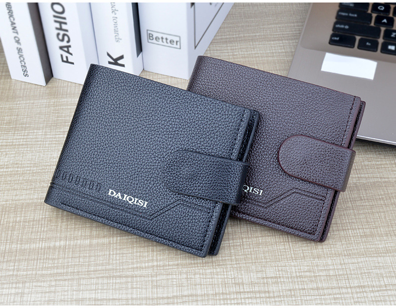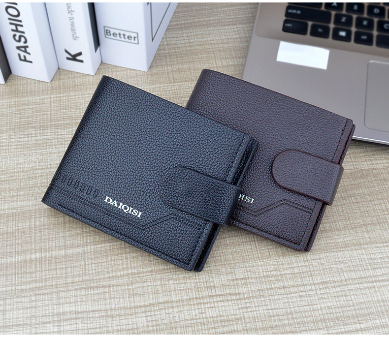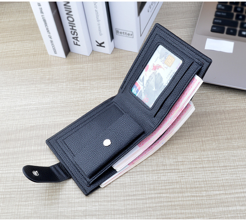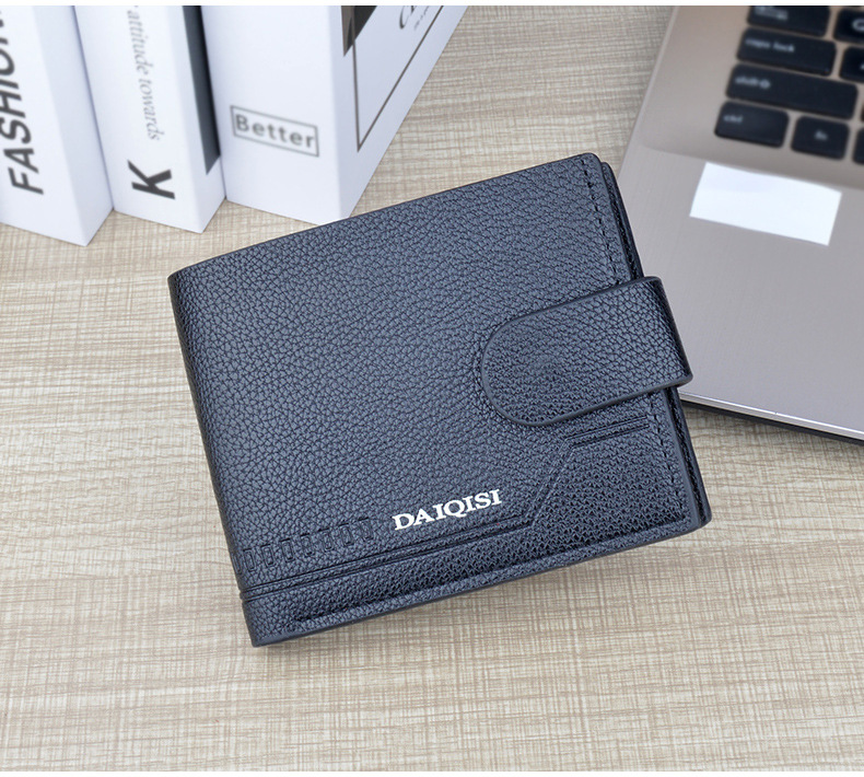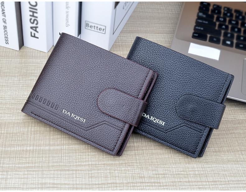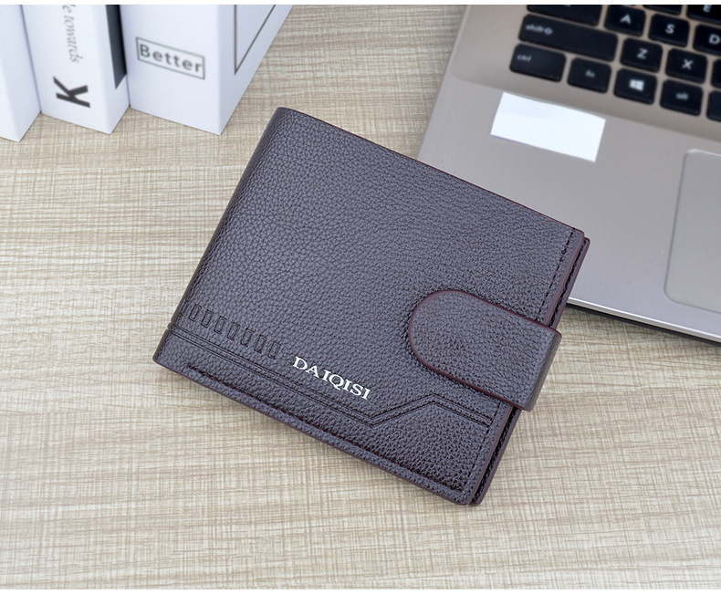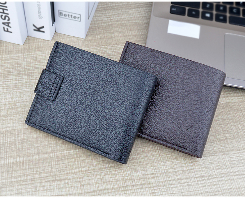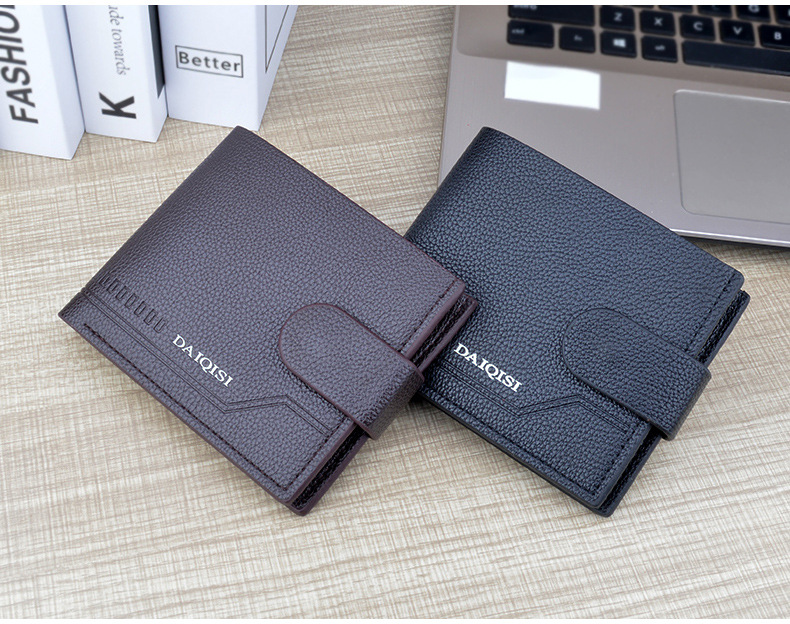 新款钱包男士短款钱夹男青年软皮钱包横款时尚简约搭扣荔枝纹皮夹