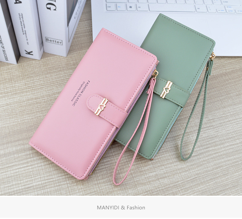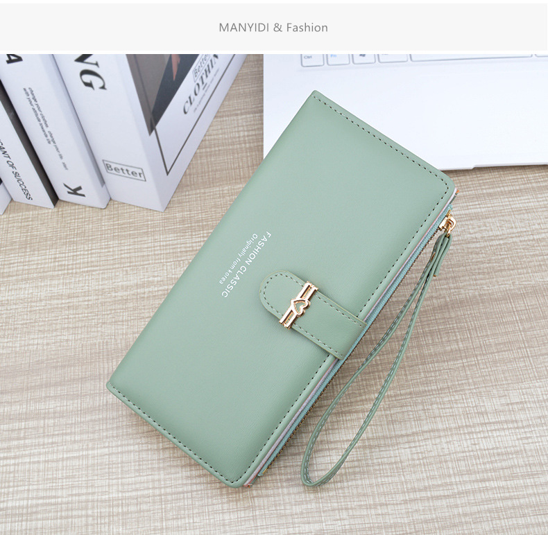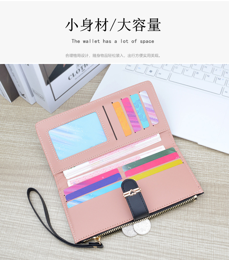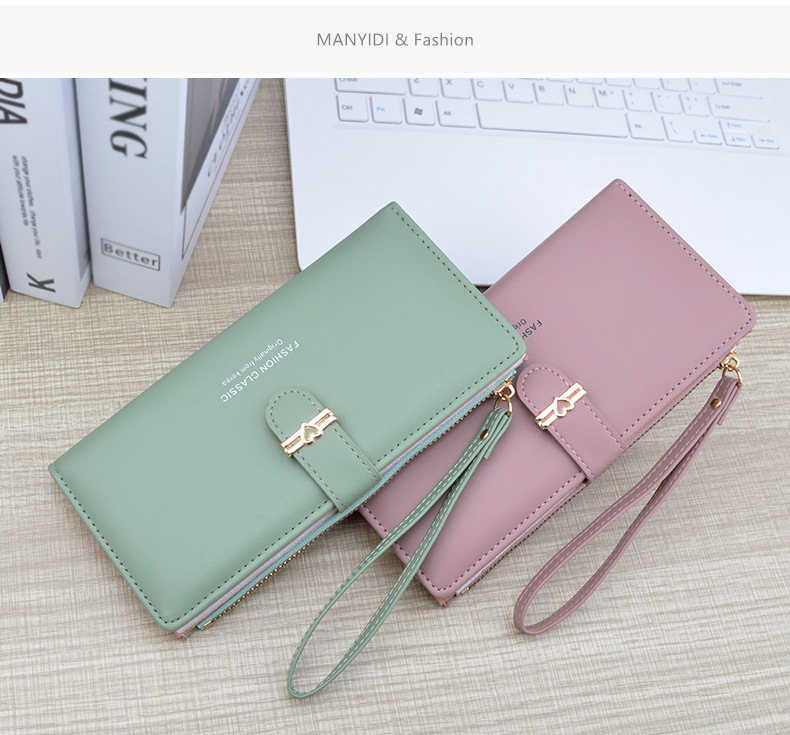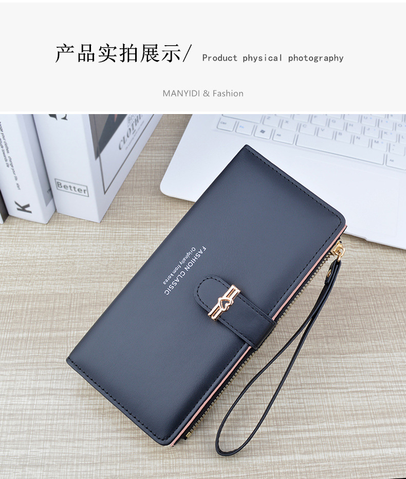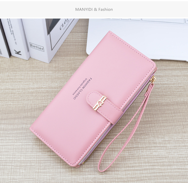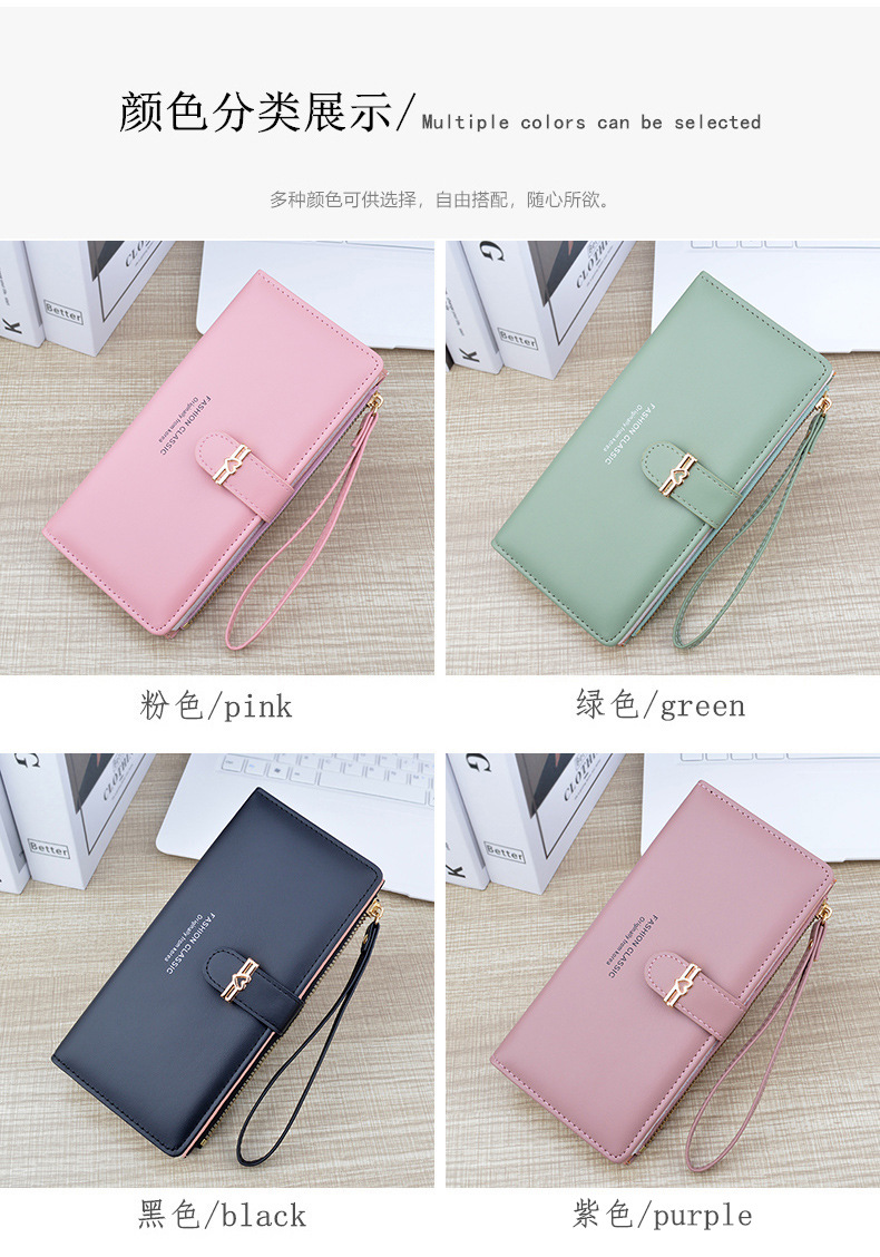 新款钱包女长款多卡位卡包拉链搭扣钱夹时尚简约软皮夹零钱手拿包