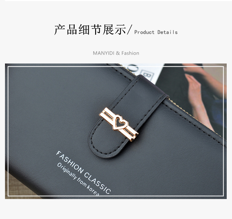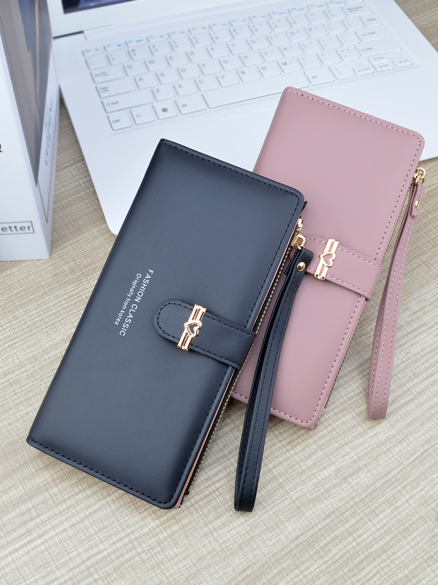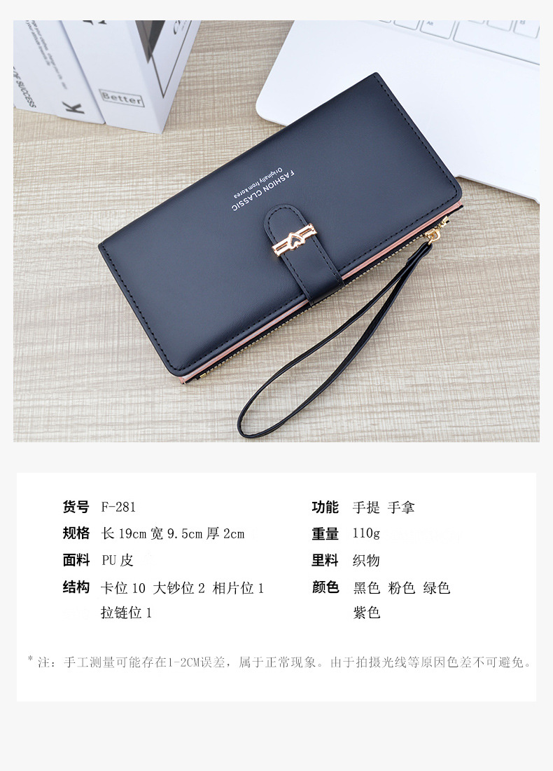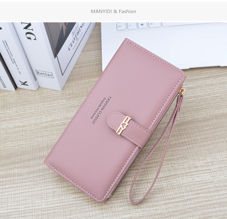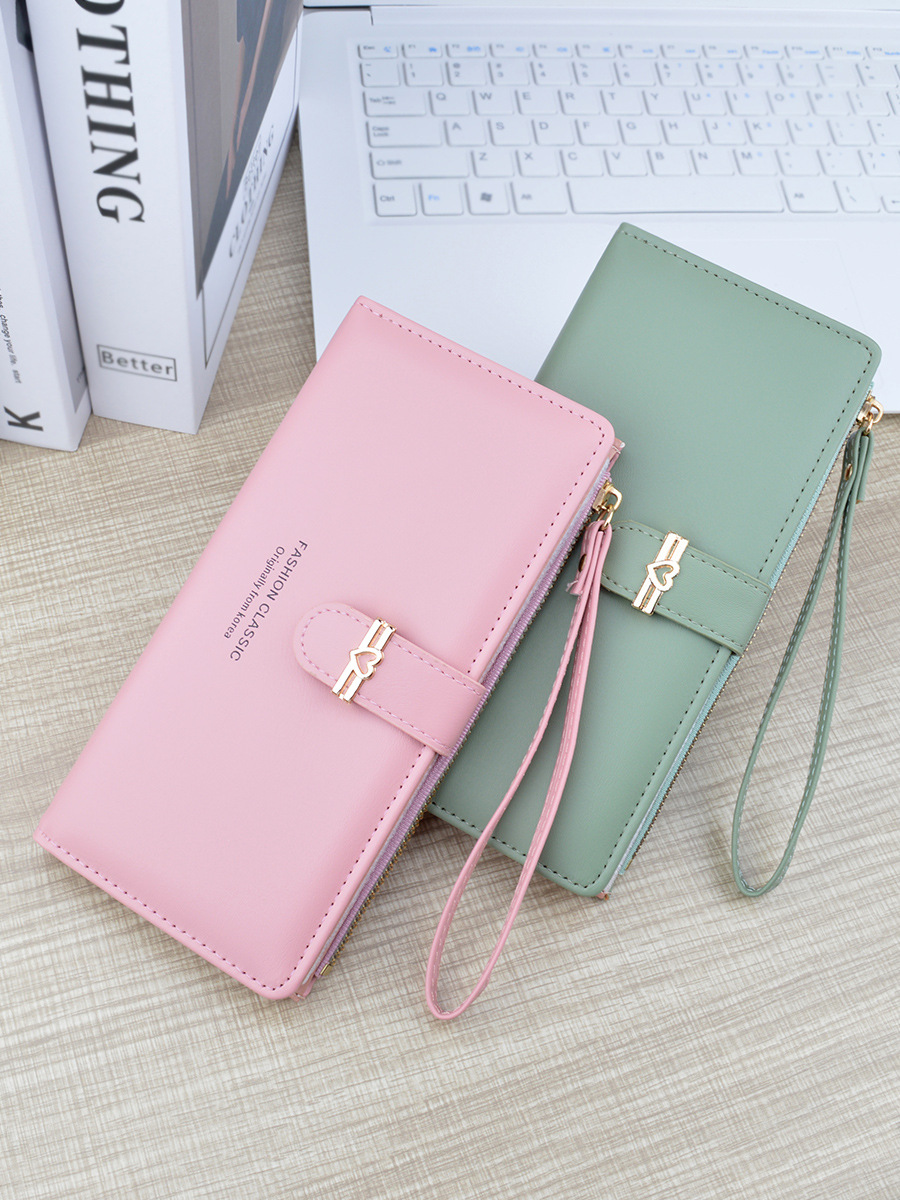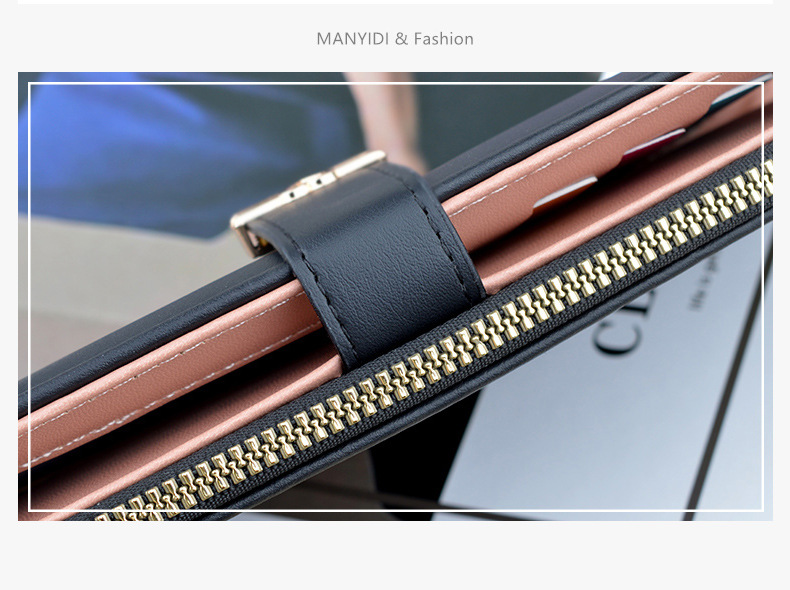 新款钱包女长款多卡位卡包拉链搭扣钱夹时尚简约软皮夹零钱手拿包