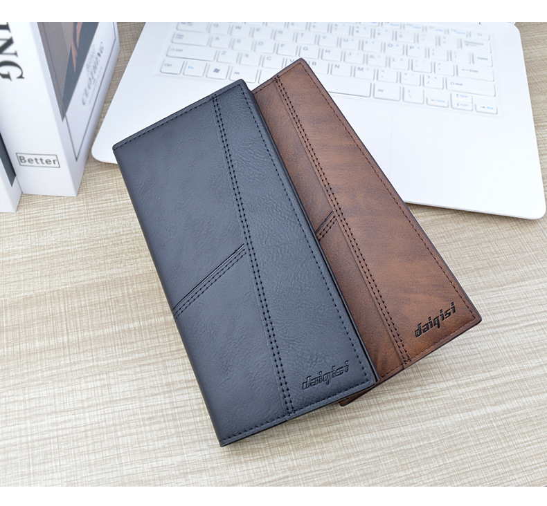 钱包男长款钱夹男青年薄款软皮夹多卡位卡包大容量时尚拼接西装包