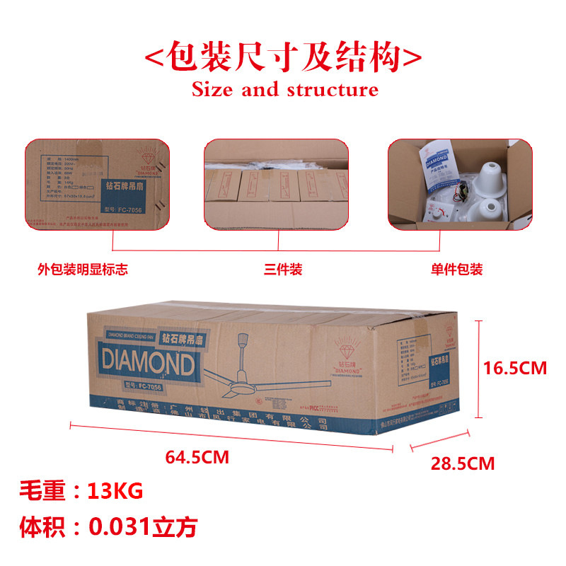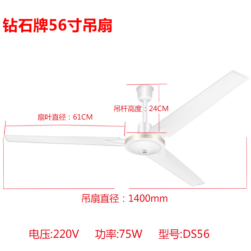 批发吊扇钻石牌56寸铁三叶吊扇家用1.4米宿舍学校工程吊扇电风扇