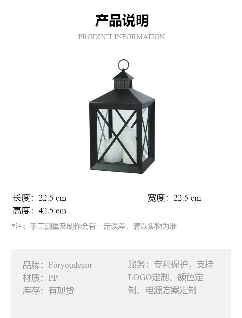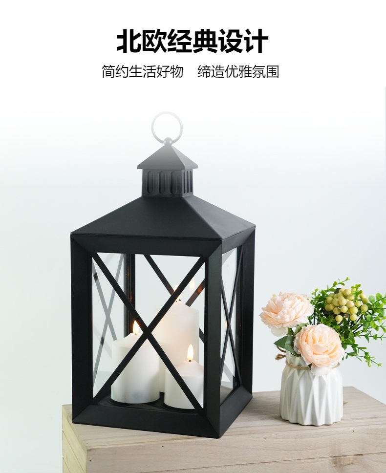 简约经典北欧风黑色LED装饰风灯圣诞节氛围蜡烛灯