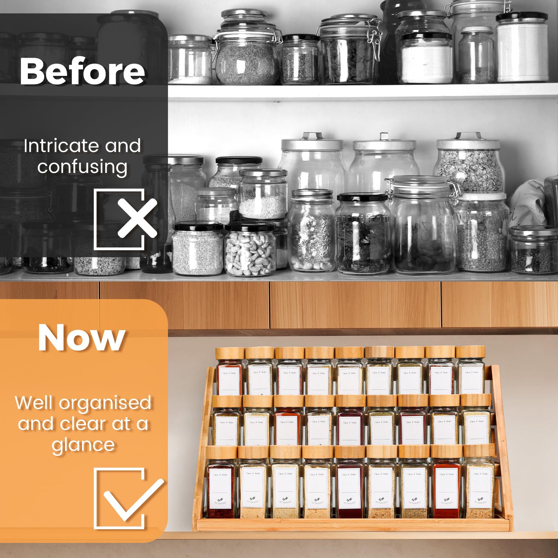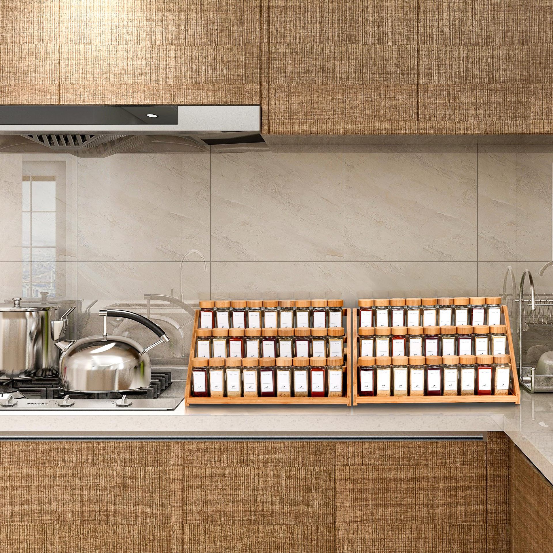 出口竹制多层调料架厨房香料整理架阶梯式木制玻璃罐储物展示架