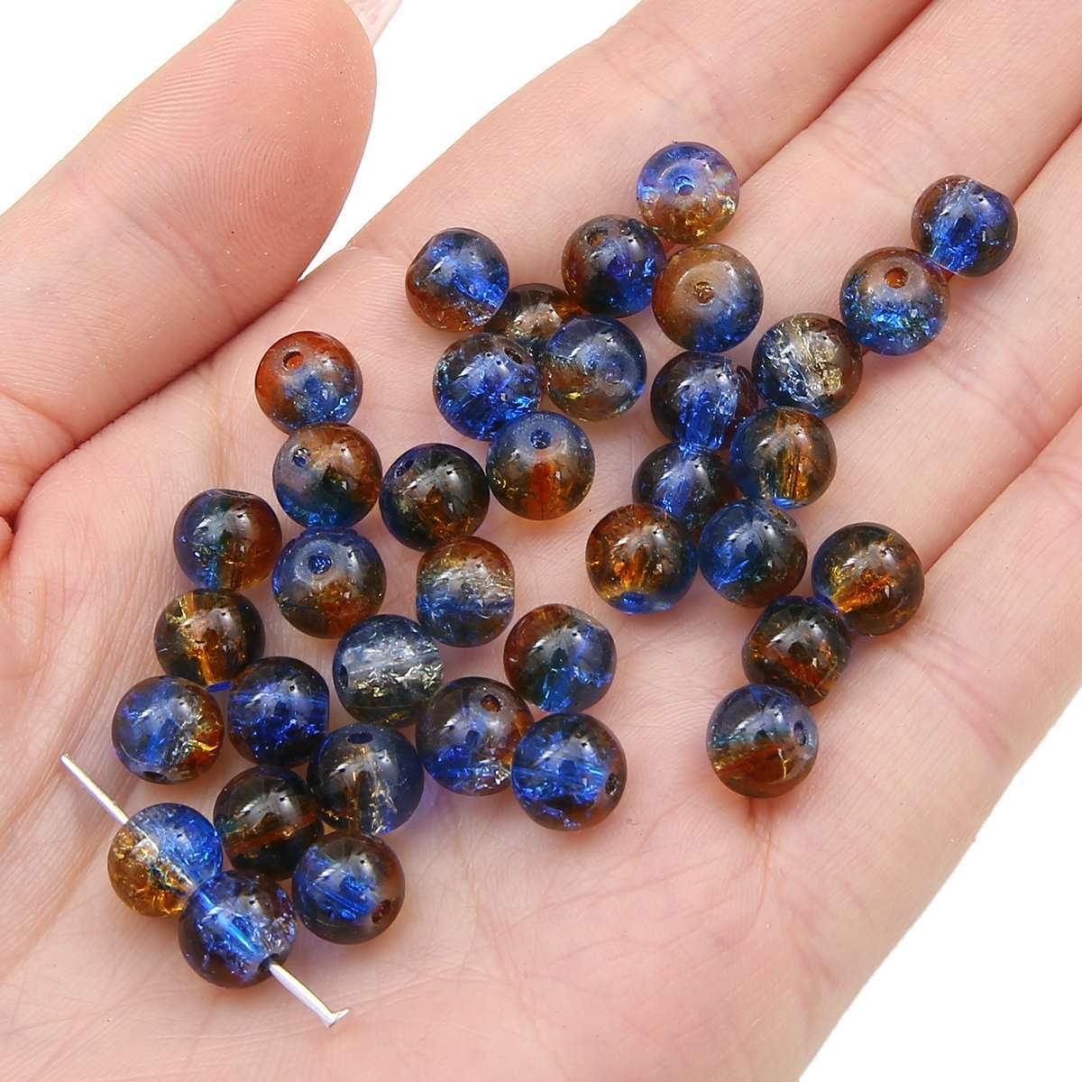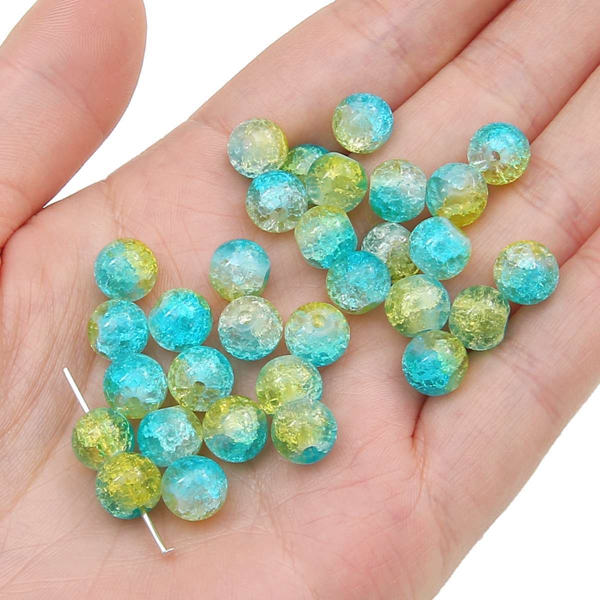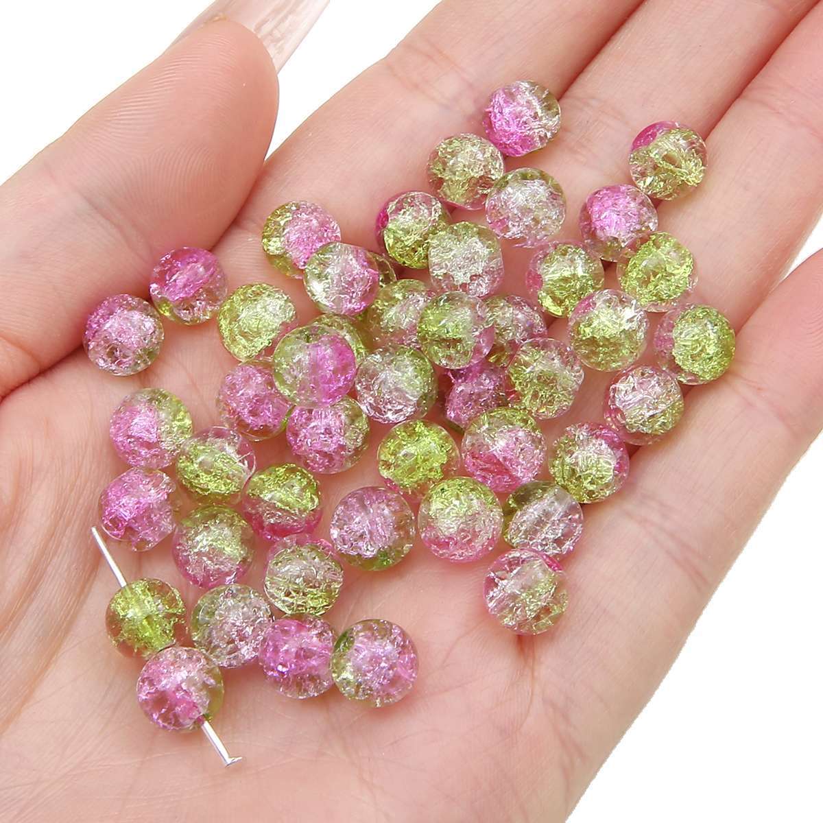 玻璃爆花晶裂纹珠手工制作diy串珠材料手链项链琉璃散珠子碎花珠