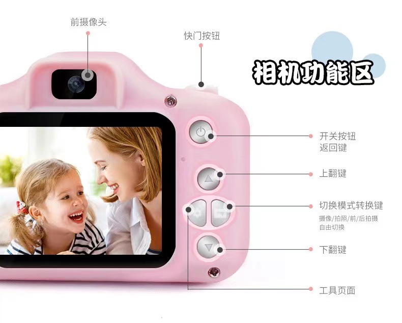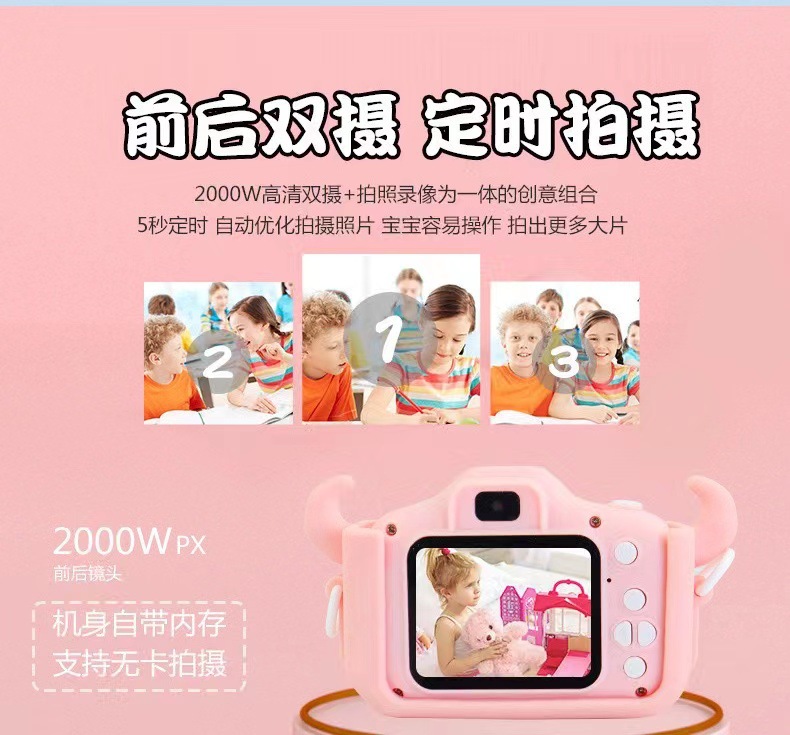 新款跨境X5S 前后双摄高清儿童相机卡通可爱拍照录像儿童礼品
