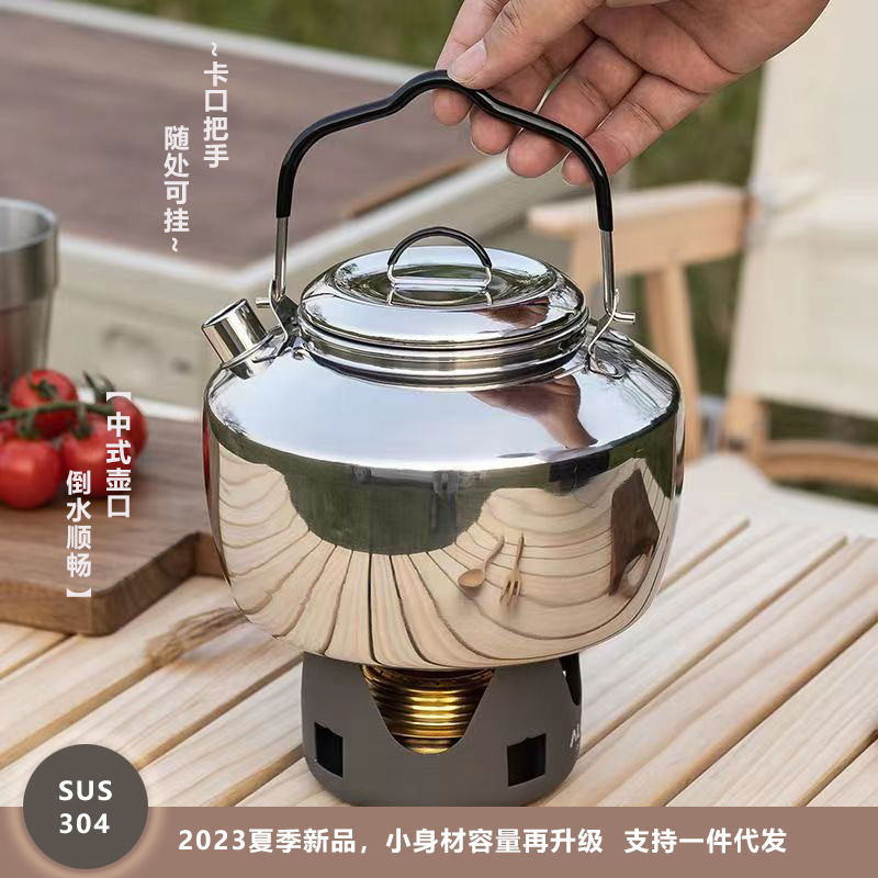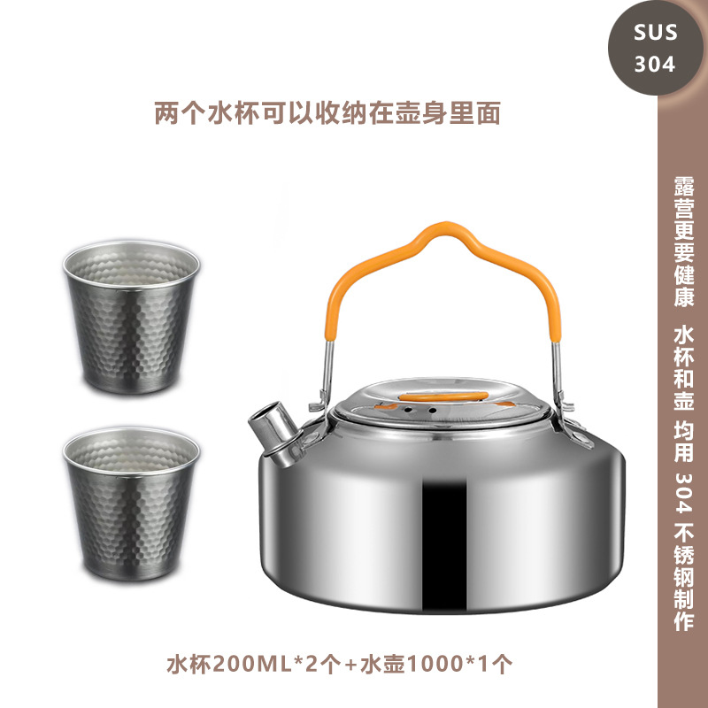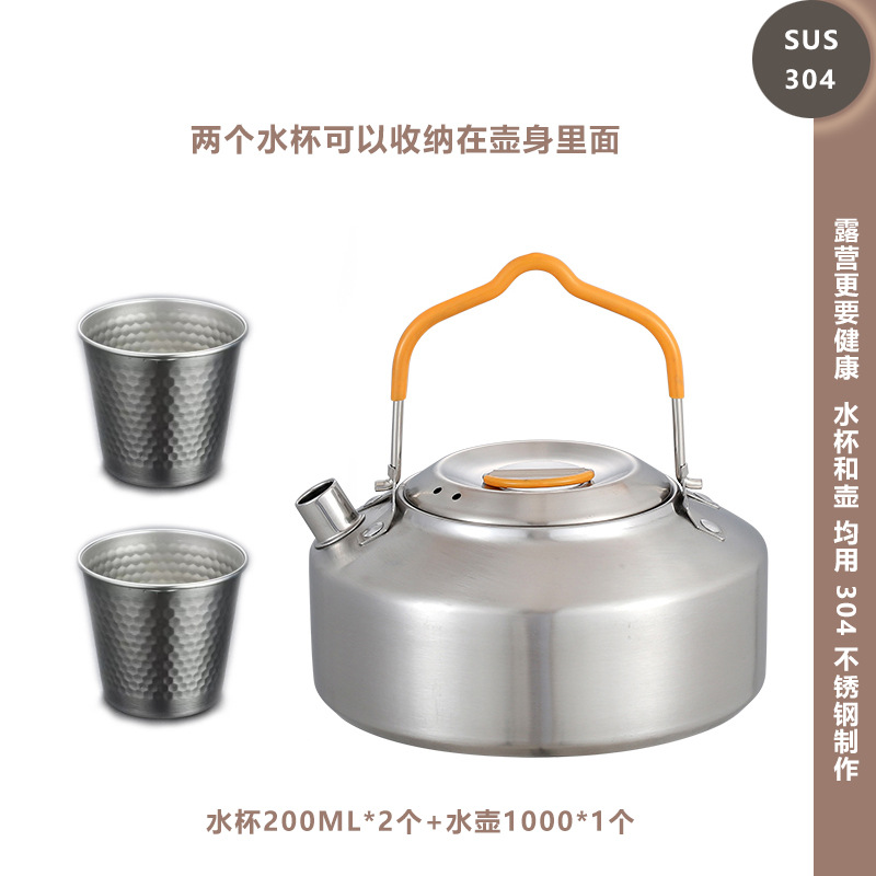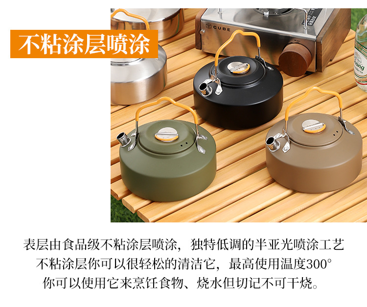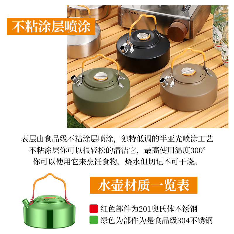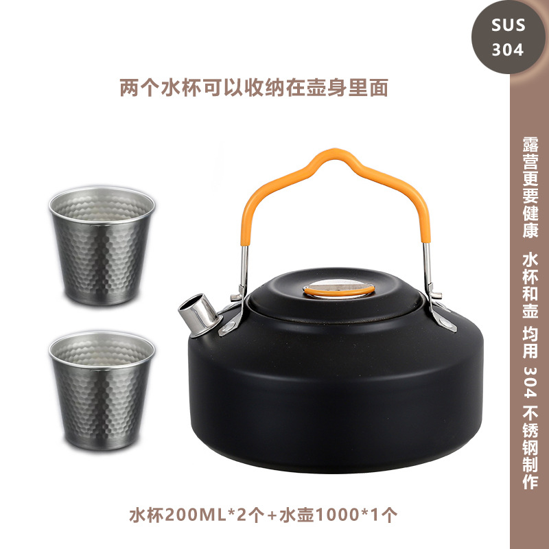 跨境碳烧户外咖啡壶登山垂钓煮茶壶野营烧水壶旅行水壶套装大容量