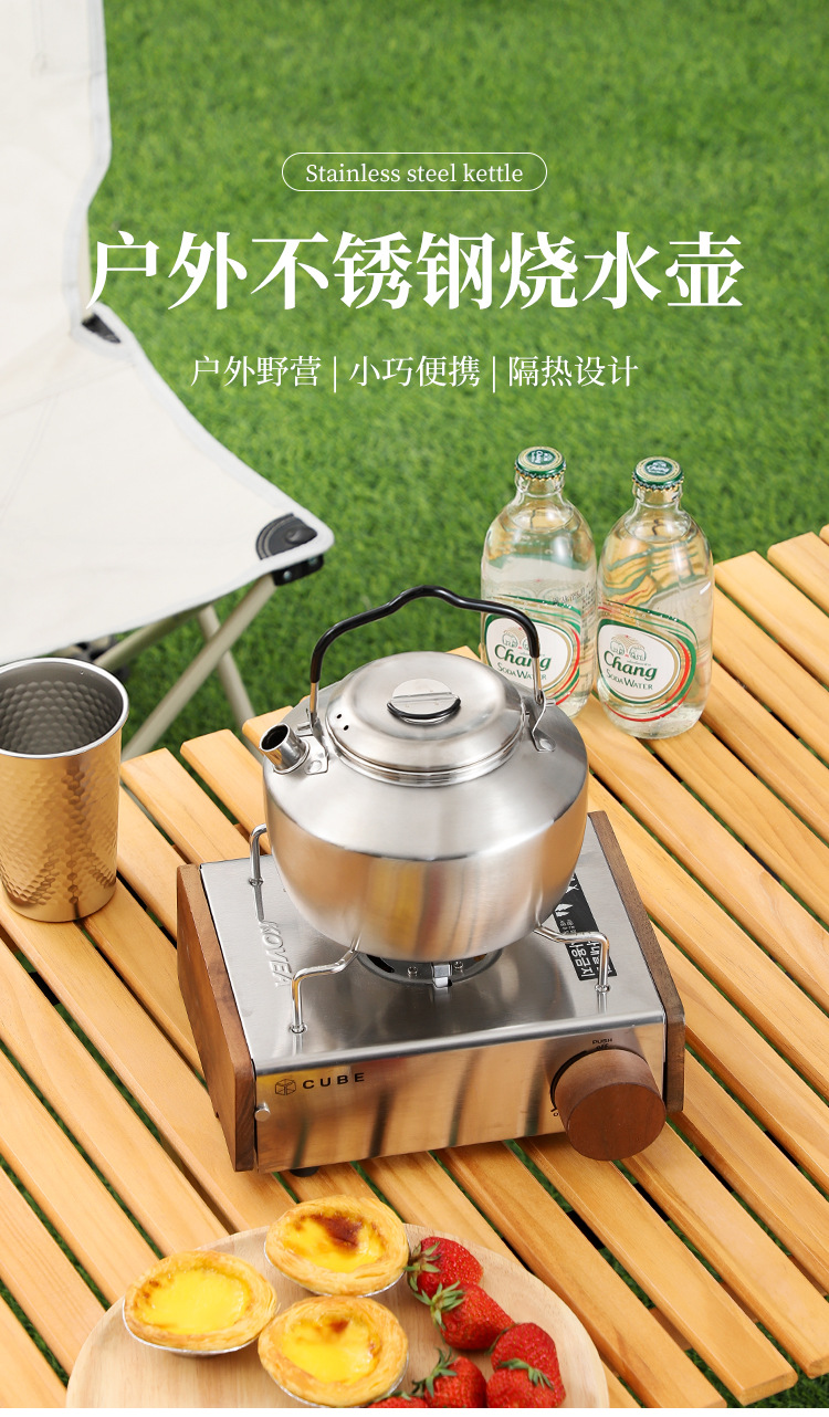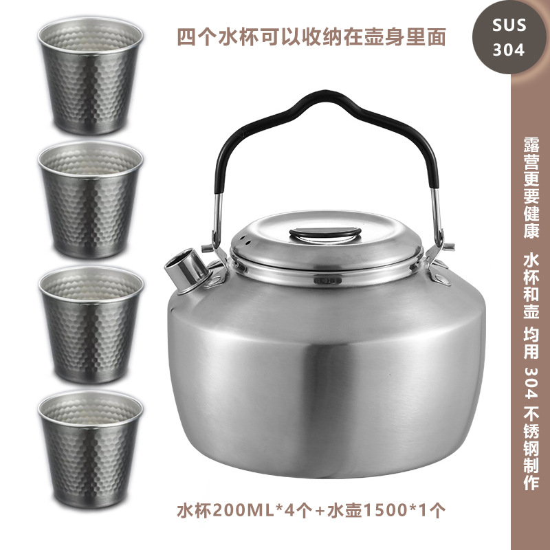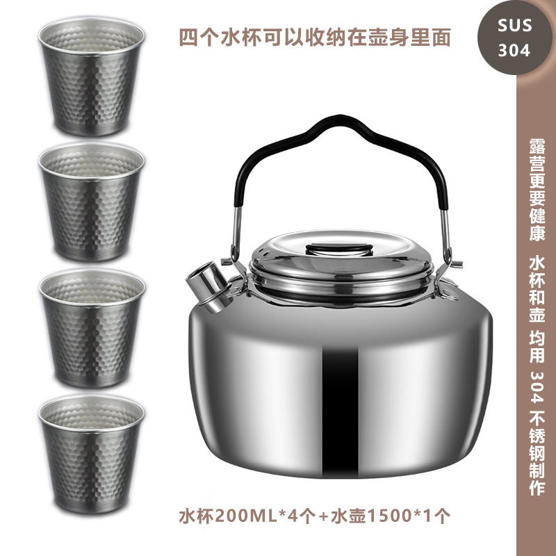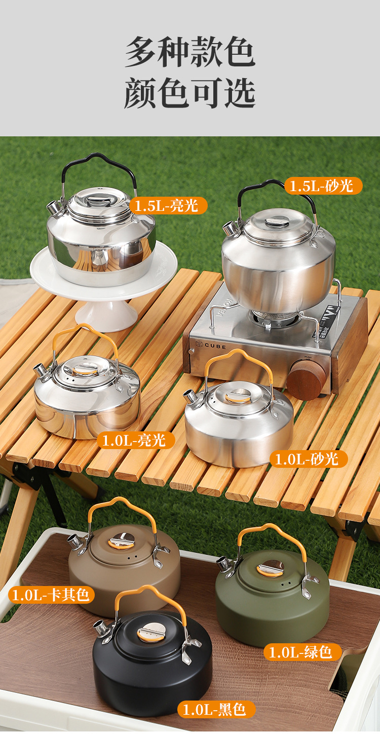 跨境碳烧户外咖啡壶登山垂钓煮茶壶野营烧水壶旅行水壶套装大容量