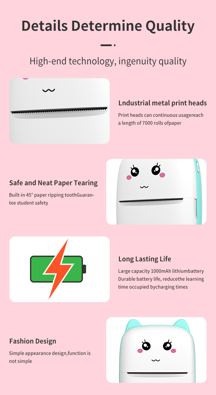 益智儿童打印机便携式拍题笔记热敏打印机文档照片作业错题打印机