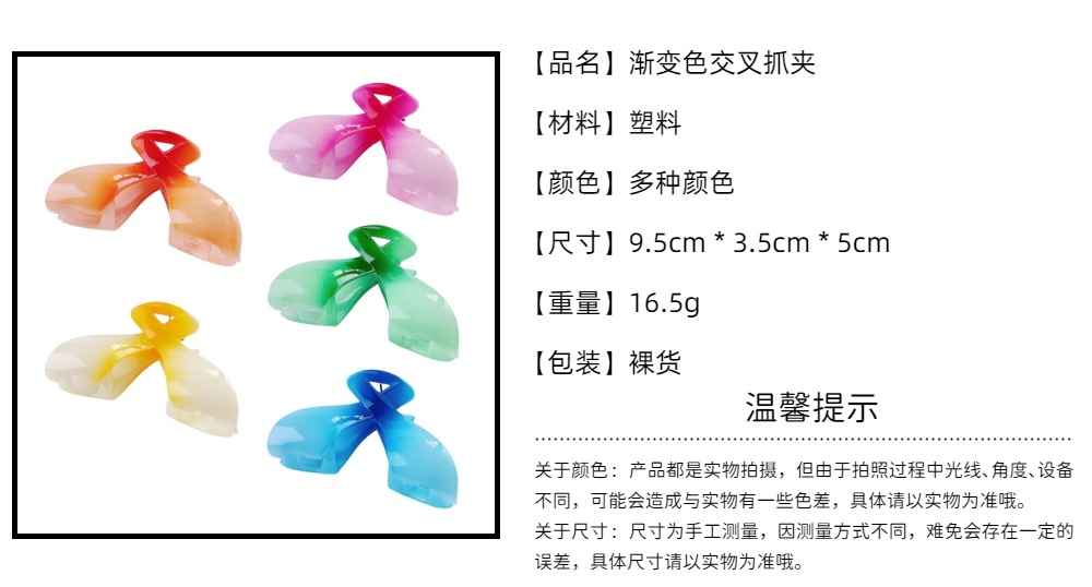 跨境爆款时尚发饰女渐变色交叉抓夹扎马尾百搭发爪丸子头鲨鱼夹